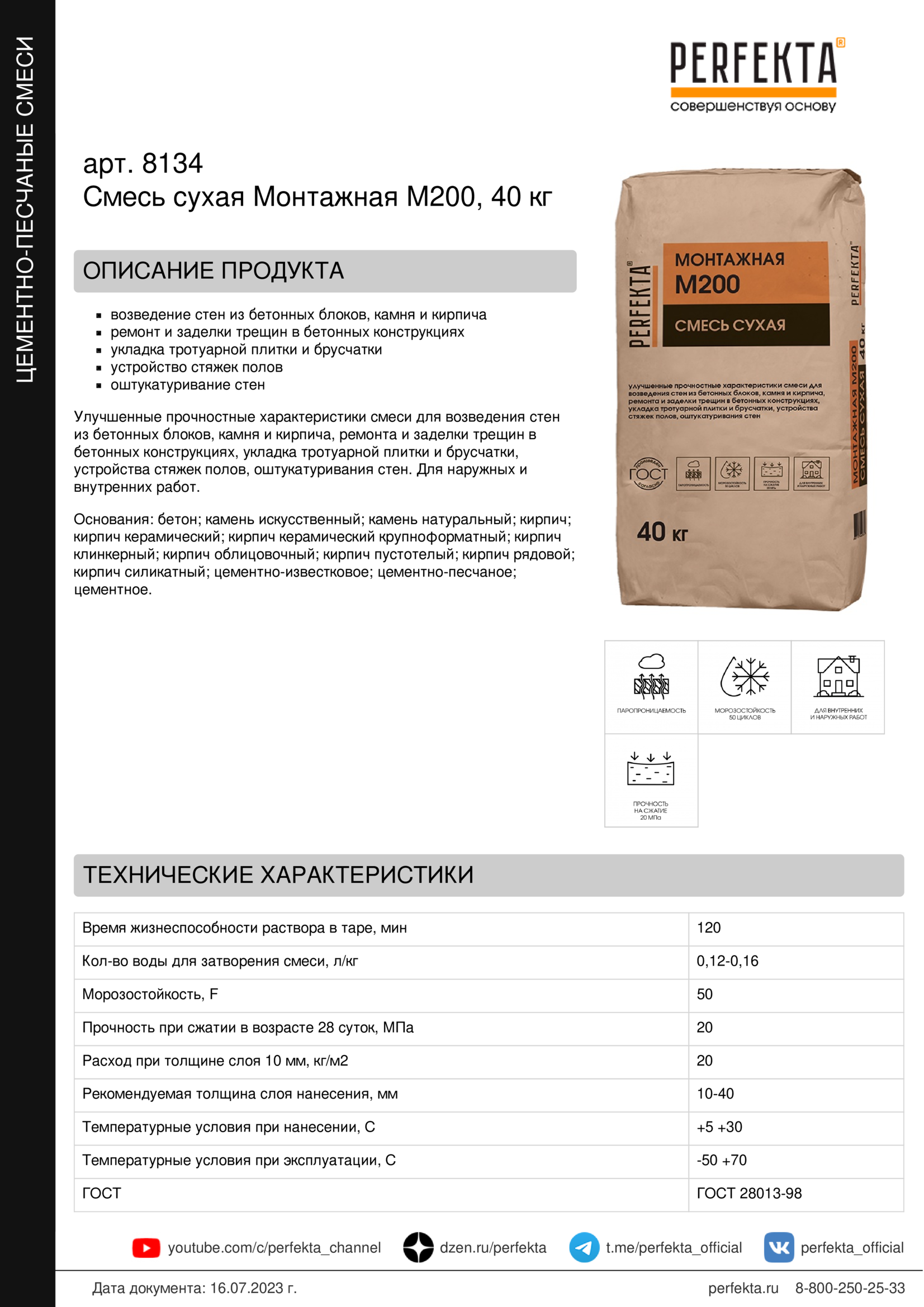 Все рекомендации и технические характеристики верны при температуре окружающей среды +20°С и относительной влажности 60 %. Качество материала гарантируется только при точном соблюдении инструкции производителя по технологии применения и требований СНиП и СП. Данная инструкция теряет силу после появления новой версии на сайте perfekta.ru.