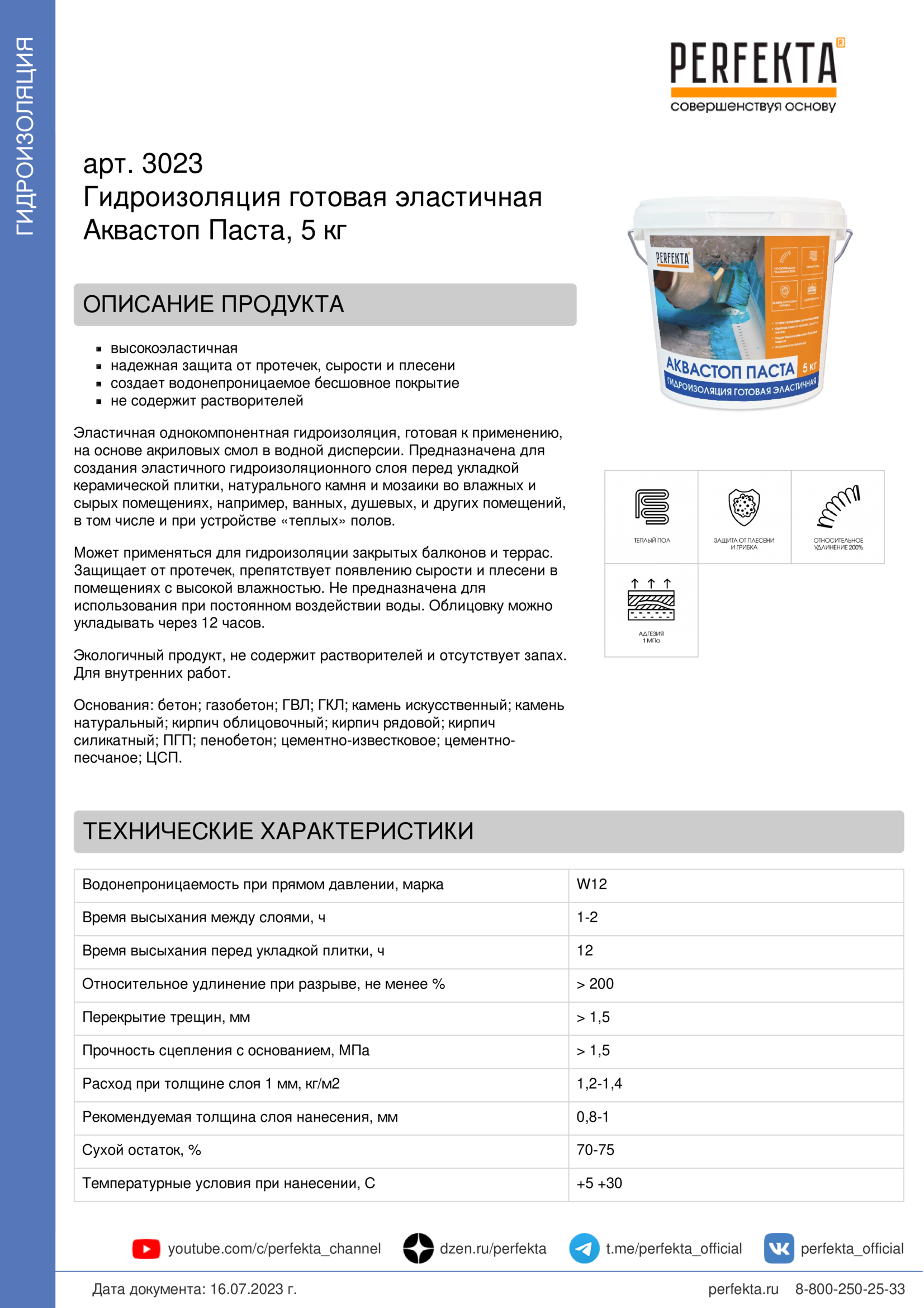 Все рекомендации и технические характеристики верны при температуре окружающей среды +20°С и относительной влажности 60%. Качество материала гарантируется только при точном соблюдении инструкции производителя по технологии применения и требований СНиП и СП. Данная инструкция теряет силу после появления новой версии на сайте perfekta.ru