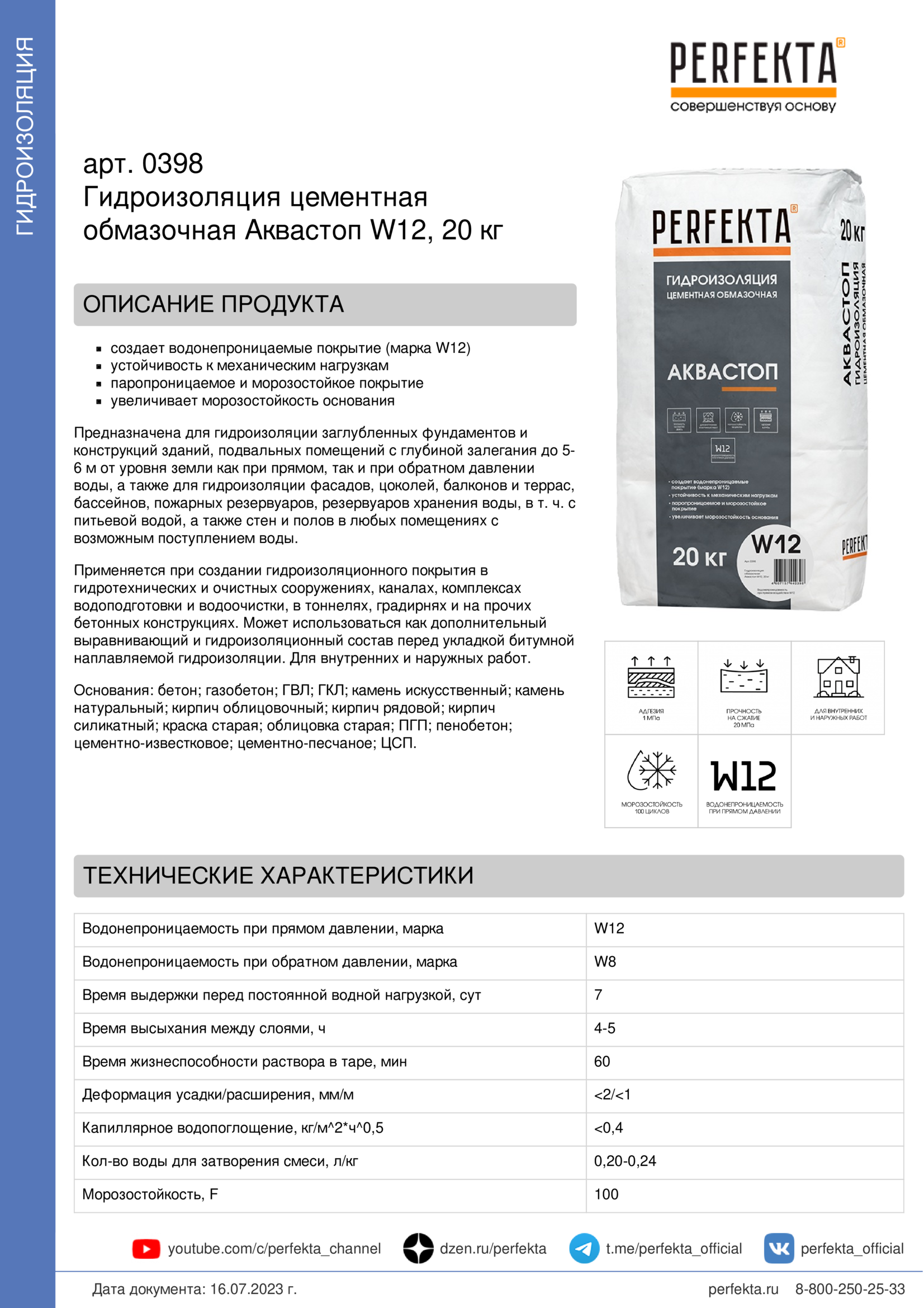 Все рекомендации и технические характеристики верны при температуре окружающей среды +20°С и относительной влажности 60%. Качество материала гарантируется только при точном соблюдении инструкции производителя по технологии применения и требований СНиП и СП. Данная инструкция теряет силу после появления новой версии на сайте perfekta.ru