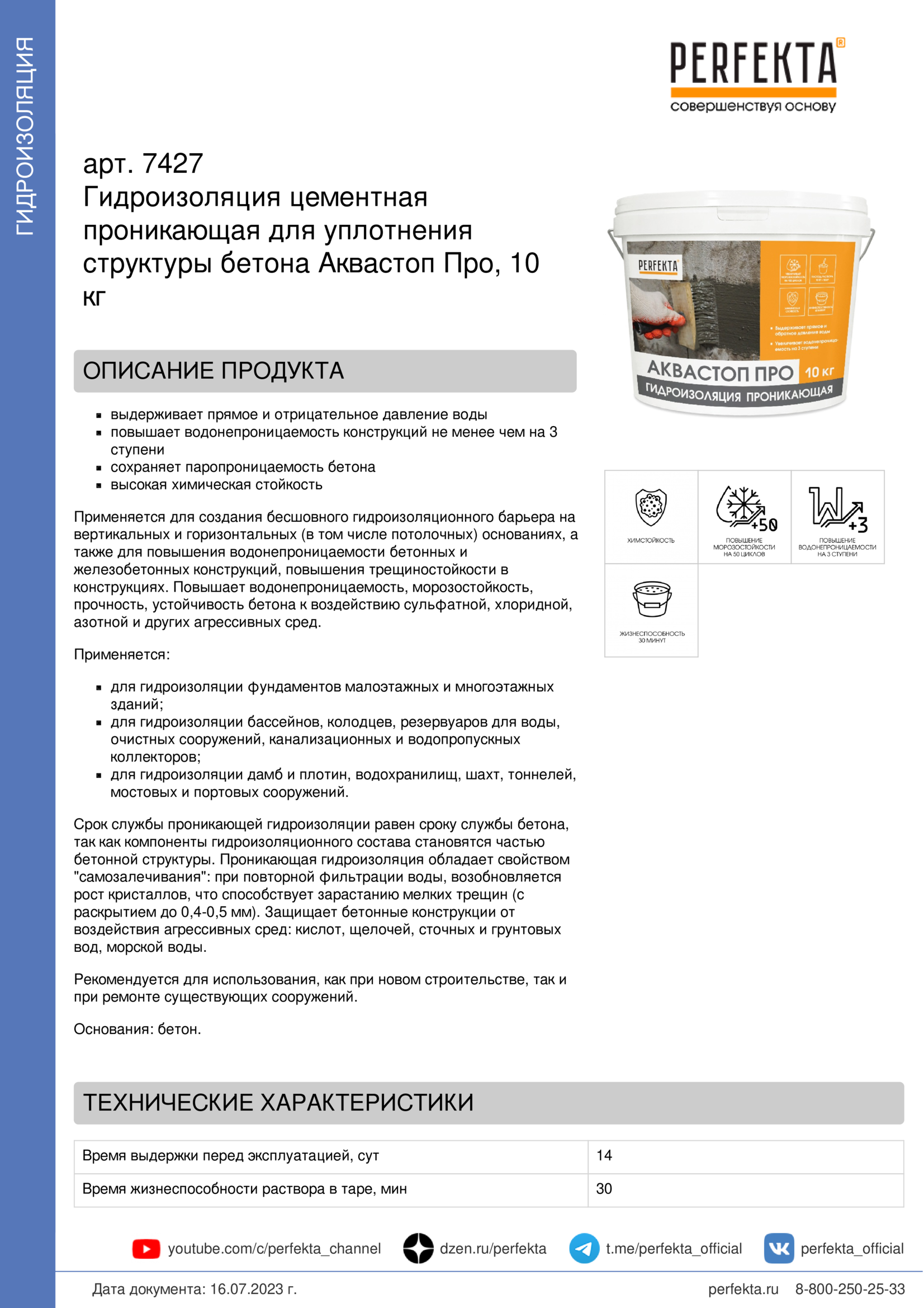 Применяется для создания бесшовного гидроизоляционного барьера на вертикальных и горизонтальных (в том числе потолочных) основаниях, а также для повышения водонепроницаемости бетонных и железобетонных конструкций, повышения трещиностойкости в конструкциях. Повышает водонепроницаемость, морозостойкость, прочность, устойчивость бетона к воздействию сульфатной, хлоридной, азотной и других агрессивных сред.
