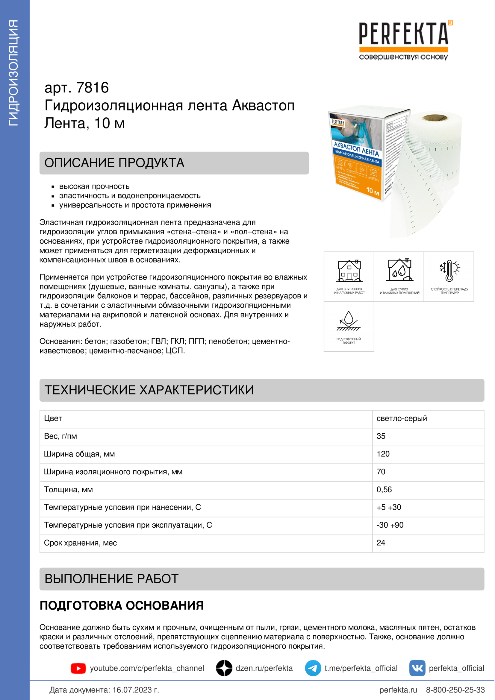 Эластичная гидроизоляционная лента предназначена для гидроизоляции углов примыкания «стена–стена» и «пол–стена» на основаниях, при устройстве гидроизоляционного покрытия, а также может применяться для герметизации деформационных и компенсационных швов в основаниях.