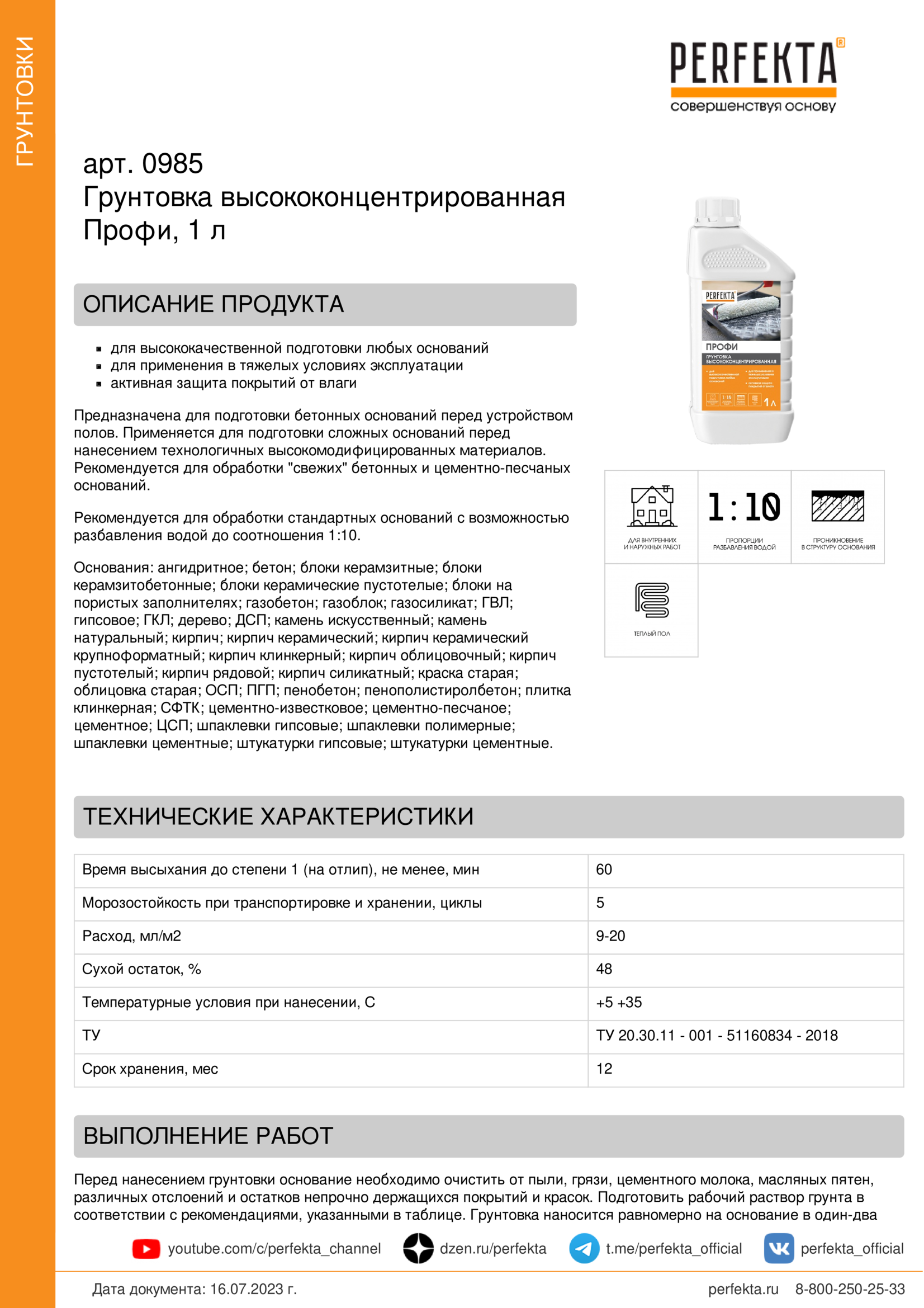 Все рекомендации и технические характеристики верны при температуре окружающей среды +20°С и относительной влажности 60 %. Качество материала гарантируется только при точном соблюдении инструкции производителя по технологии применения и требований СНиП и СП. Данная инструкция теряет силу после появления новой версии на сайте perfekta.ru.