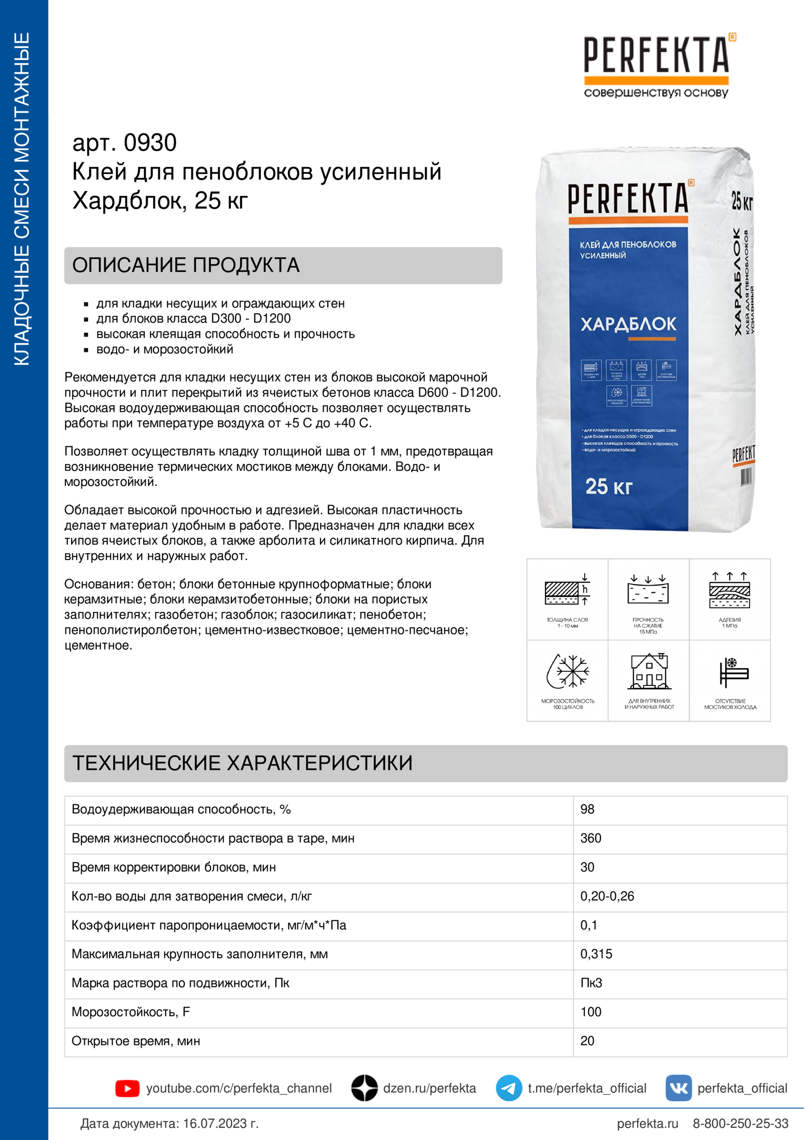 Рекомендуется для кладки несущих стен из блоков высокой марочной прочности и плит перекрытий из ячеистых бетонов класса D600 - D1200. Высокая водоудерживающая способность позволяет осуществлять работы при температуре воздуха от +5 С до +40 С.