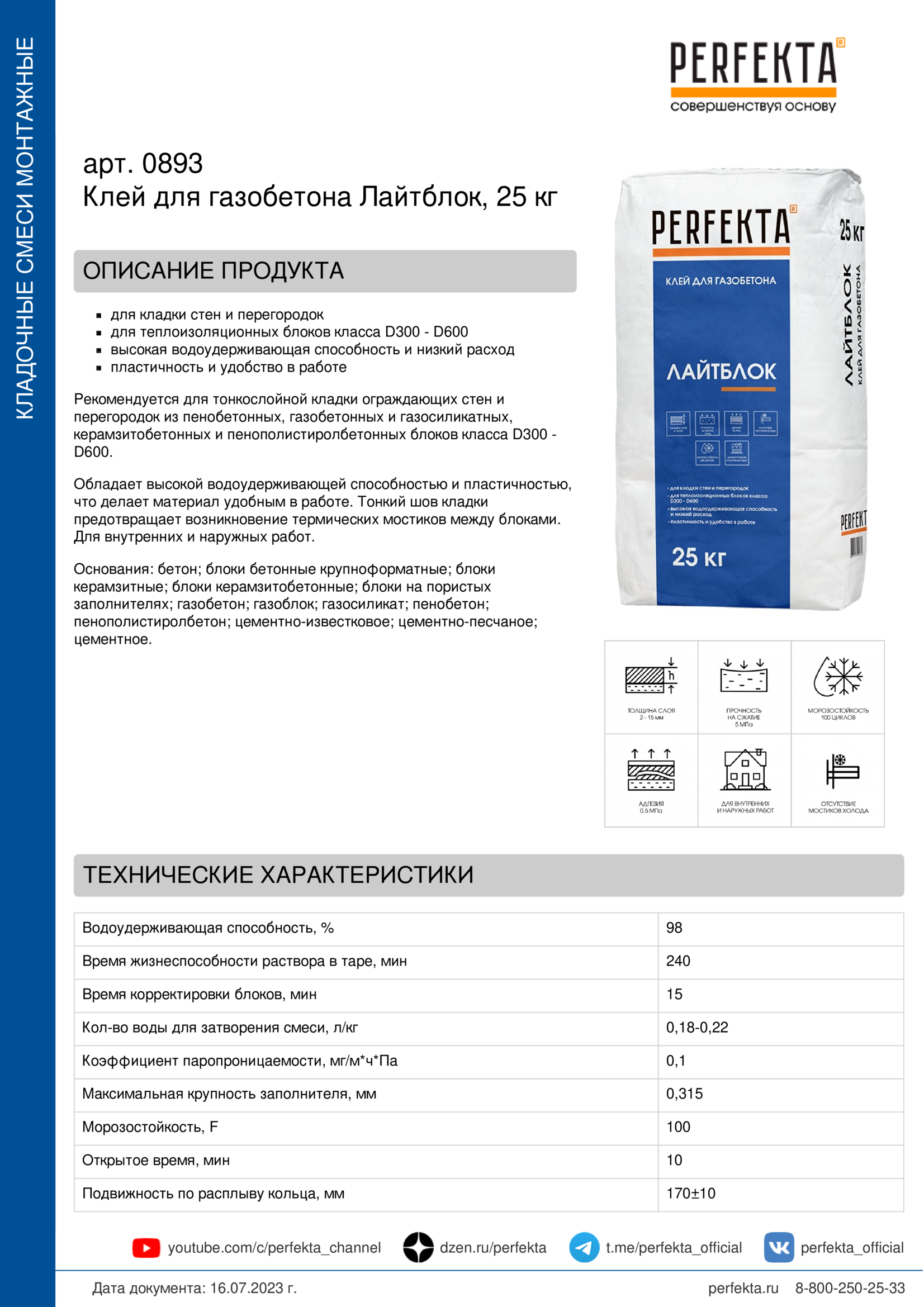 Все рекомендации и технические характеристики верны при температуре окружающей среды +20°С и относительной влажности 60 %. Качество материала гарантируется только при точном соблюдении инструкции производителя по технологии применения и требований СНиП и СП. Данная инструкция теряет силу после появления новой версии на сайте perfekta.ru.