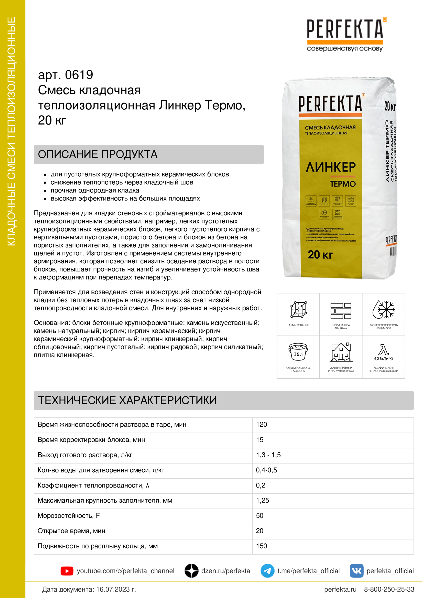 Применяется для возведения стен и конструкций способом однородной кладки без тепловых потерь в кладочных швах за счет низкой теплопроводности кладочной смеси. Для внутренних и наружных работ.