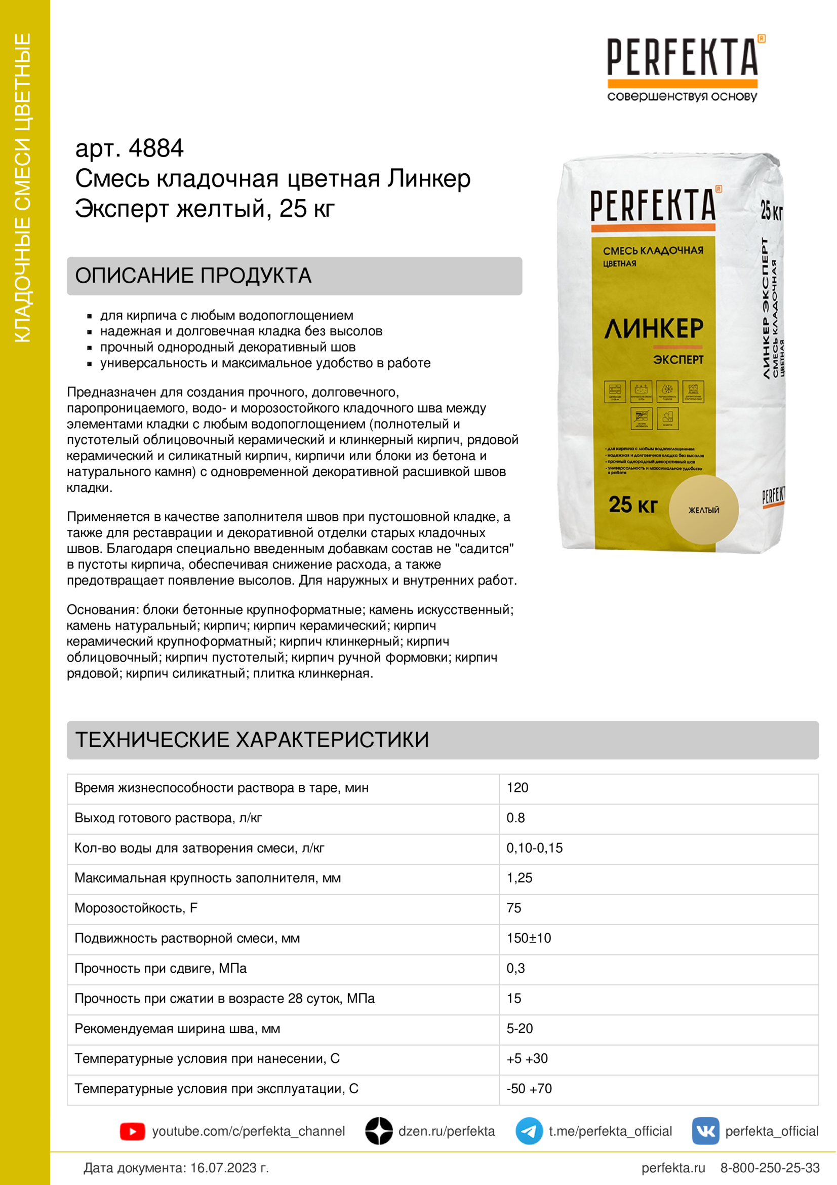 • Смесь кладочная цветная Линкер Эксперт желтый, 25 кг