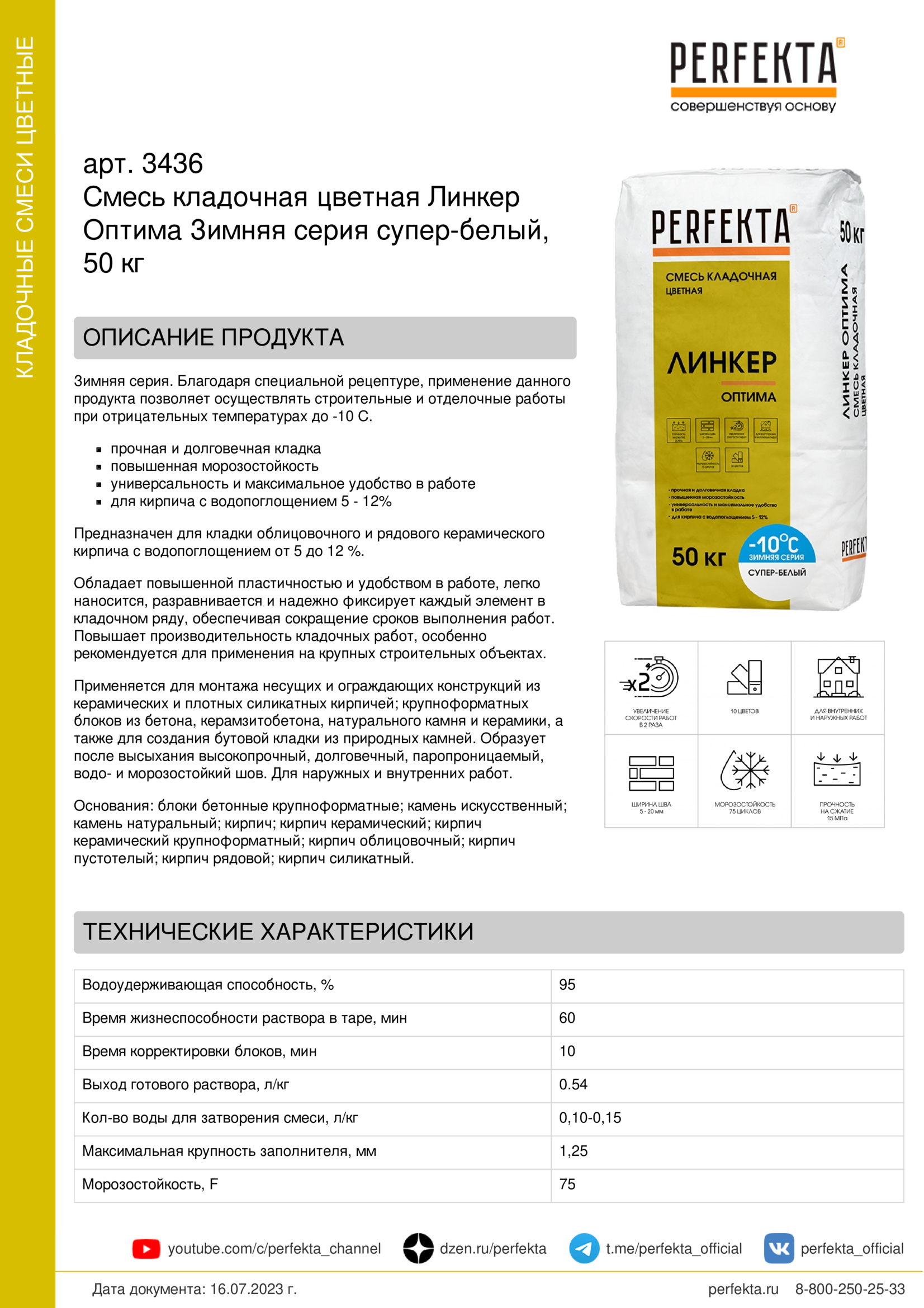 • Смесь кладочная цветная Линкер Оптима Зимняя серия супер-белый, 50 кг