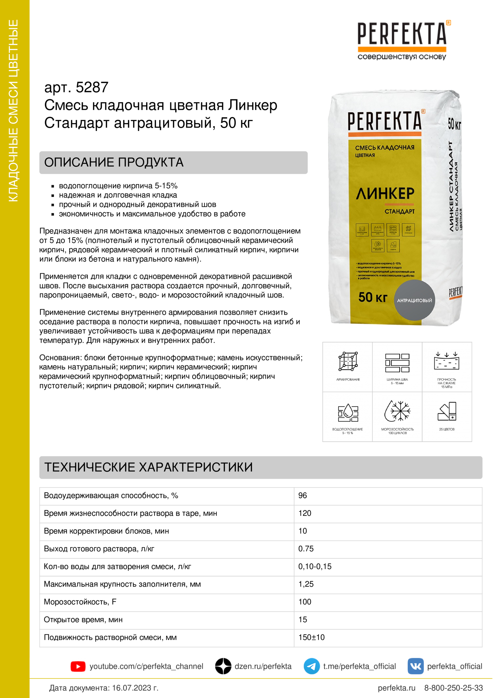 • Смесь кладочная цветная Линкер Стандарт антрацитовый, 50 кг