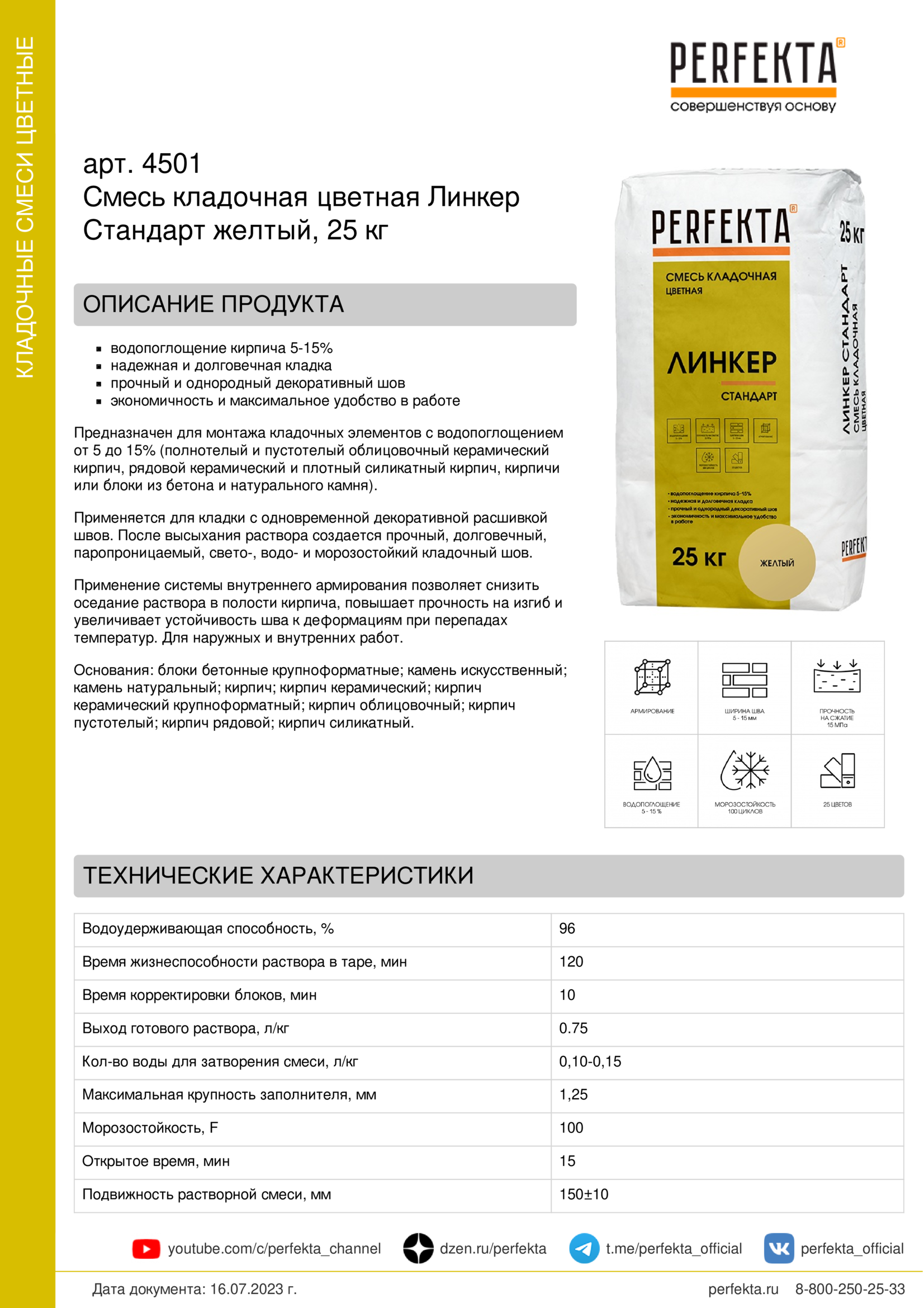 • Смесь кладочная цветная Линкер Стандарт желтый, 25 кг
