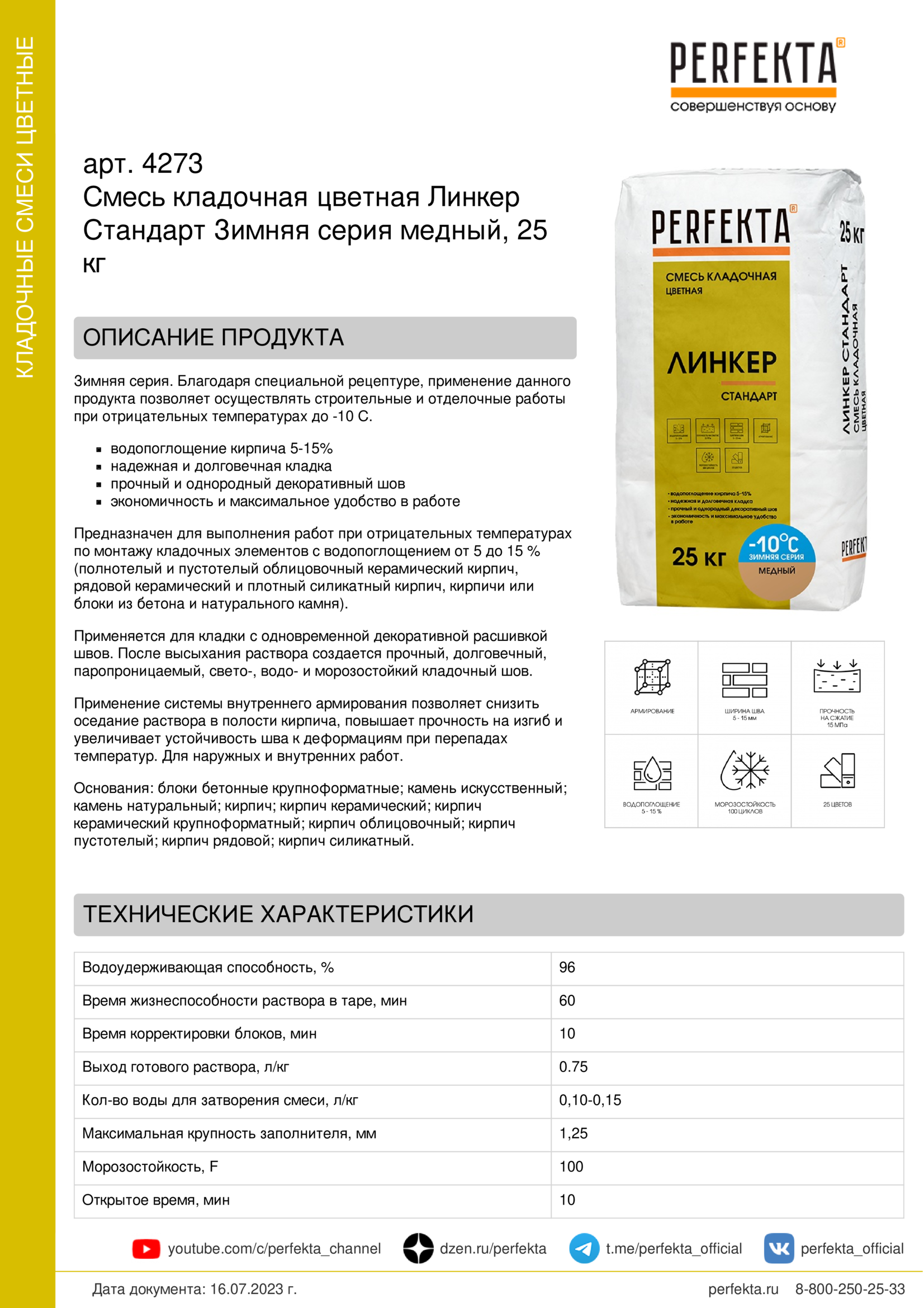Все рекомендации и технические характеристики верны при температуре окружающей среды +20°С и относительной влажности 60 %. Качество материала гарантируется только при точном соблюдении инструкции производителя по технологии применения и требований СНиП и СП. Данная инструкция теряет силу после появления новой версии на сайте perfekta.ru.