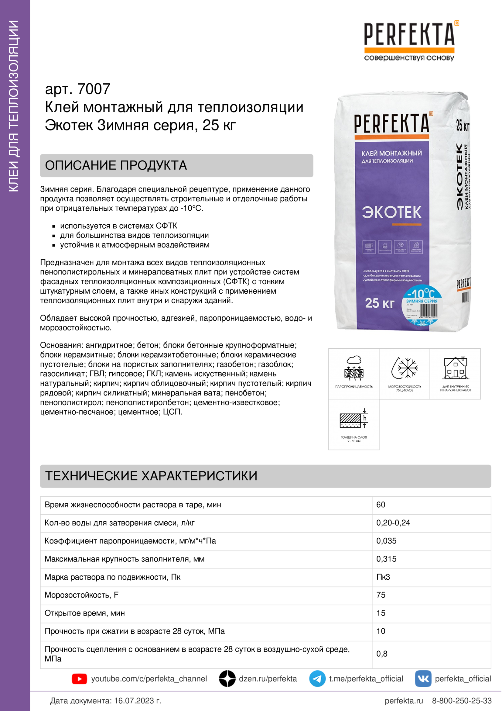 Все рекомендации и технические характеристики верны при температуре окружающей среды +20°С и относительной влажности 60 %. Качество материала гарантируется только при точном соблюдении инструкции производителя по технологии применения и требований СНиП и СП. Данная инструкция теряет силу после появления новой версии на сайте perfekta.ru.