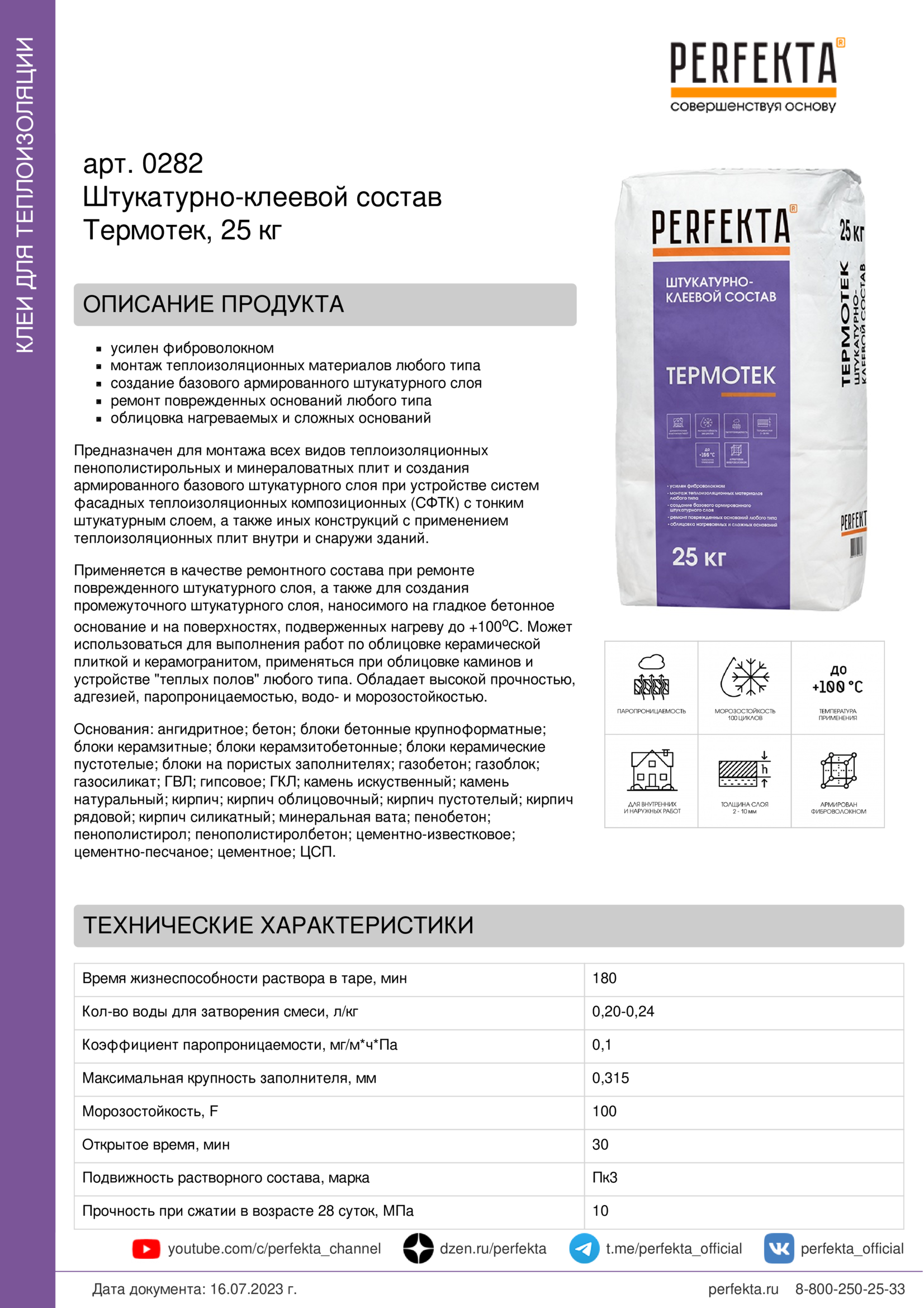 Все рекомендации и технические характеристики верны при температуре окружающей среды +20°С и относительной влажности 60 %. Качество материала гарантируется только при точном соблюдении инструкции производителя по технологии применения и требований СНиП и СП. Данная инструкция теряет силу после появления новой версии на сайте perfekta.ru.
