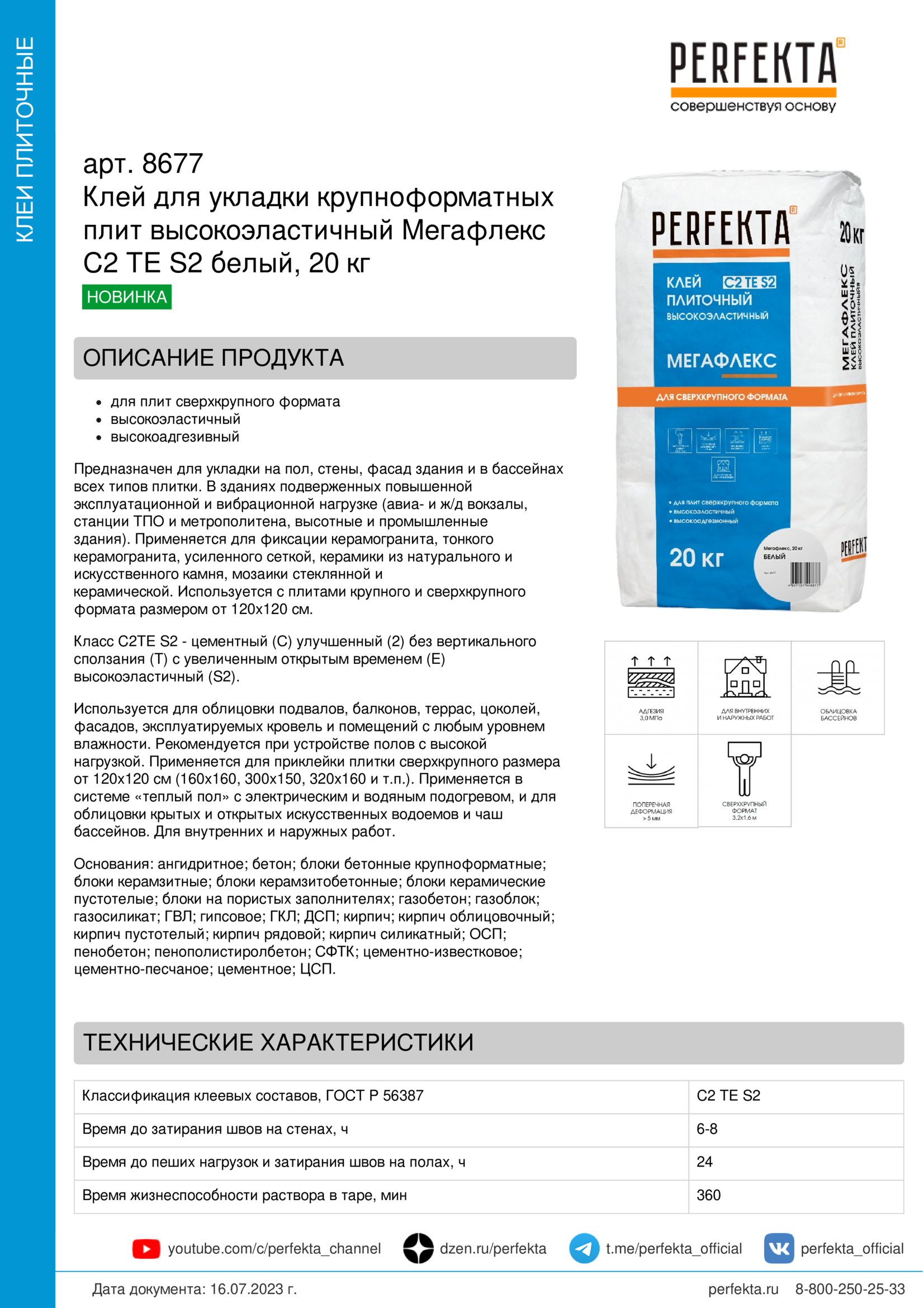 Все рекомендации и технические характеристики верны при температуре окружающей среды +20 0 С и относительной влажности 60 %. Качество материала гарантируется только при точном соблюдении инструкции Производителю по технологии применения и требований СНиП и СП. Данная инструкция теряет силу после появления новой версии на сайте perfekta.ru.
