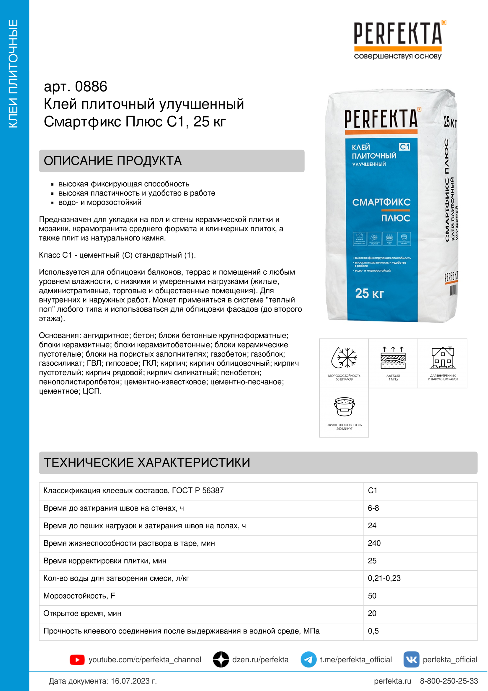 Все рекомендации и технические характеристики верны при температуре окружающей среды +20 С и относительной влажности 60%. Качество материала гарантируется только при точном соблюдении инструкции Производителя по технологии применения и требований СНиП и СП. Данная инструкция теряет силу после появления новой версии на сайте perfekta.ru.