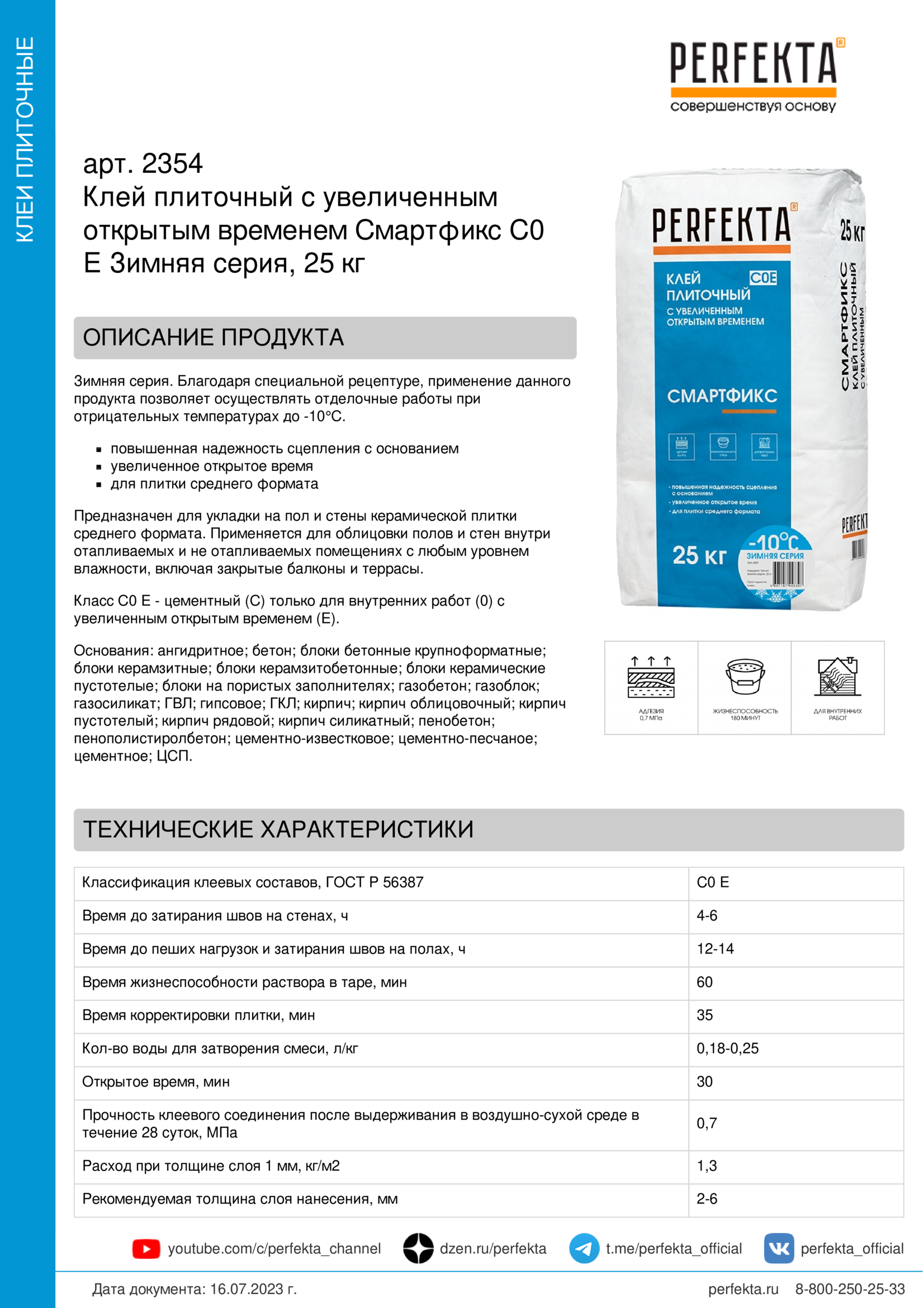 Все рекомендации и технические характеристики верны при температуре окружающей среды +20С и относительной влажности 60%. Качество материала гарантируется только при точном соблюдении инструкции Производителя по технологии применения и требований СНиП и СП. Данная инструкция теряет силу после появления новой версии на сайте perfekta.ru.