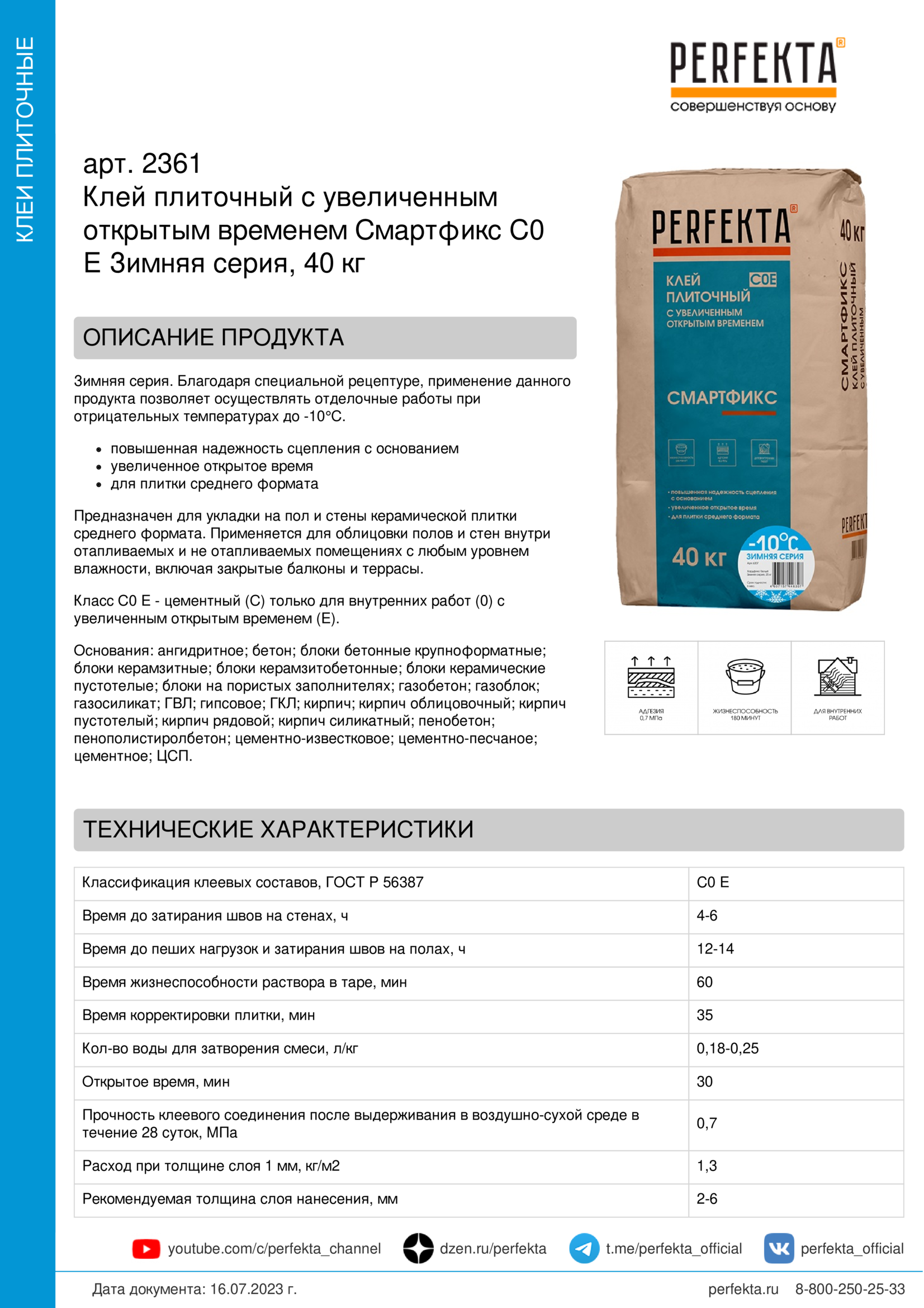 Все рекомендации и технические характеристики верны при температуре окружающей среды +20С и относительной влажности 60%. Качество материала гарантируется только при точном соблюдении инструкции Производителя по технологии применения и требований СНиП и СП. Данная инструкция теряет силу после появления новой версии на сайте perfekta.ru.