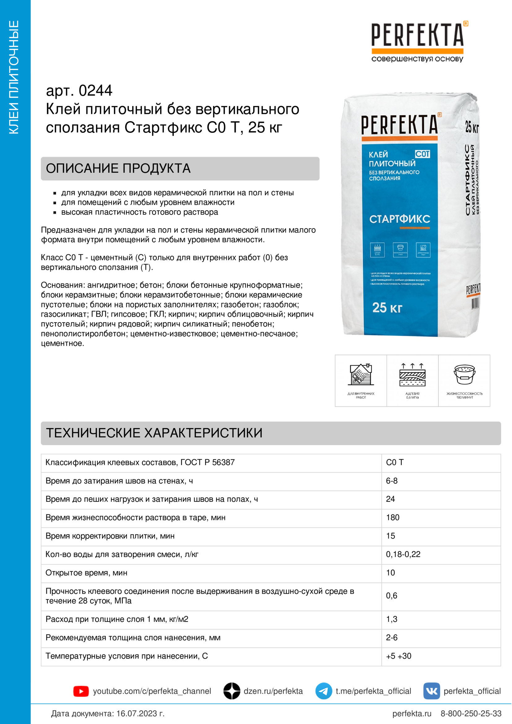 Все рекомендации и технические характеристики верны при температуре окружающей среды +20С и относительной влажности 60%. Качество материала гарантируется только при точном соблюдении инструкции производителя по технологии применения и требований СНиП и СП. Данная инструкция теряет силу после появления новой версии на сайте perfekta.ru.