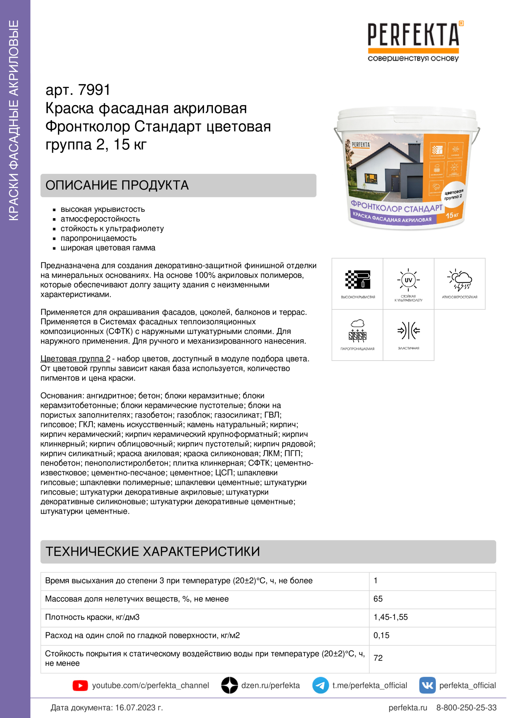 Краска фасадная акриловая Фронтколор Стандарт цветовая группа 2, 15 кг
