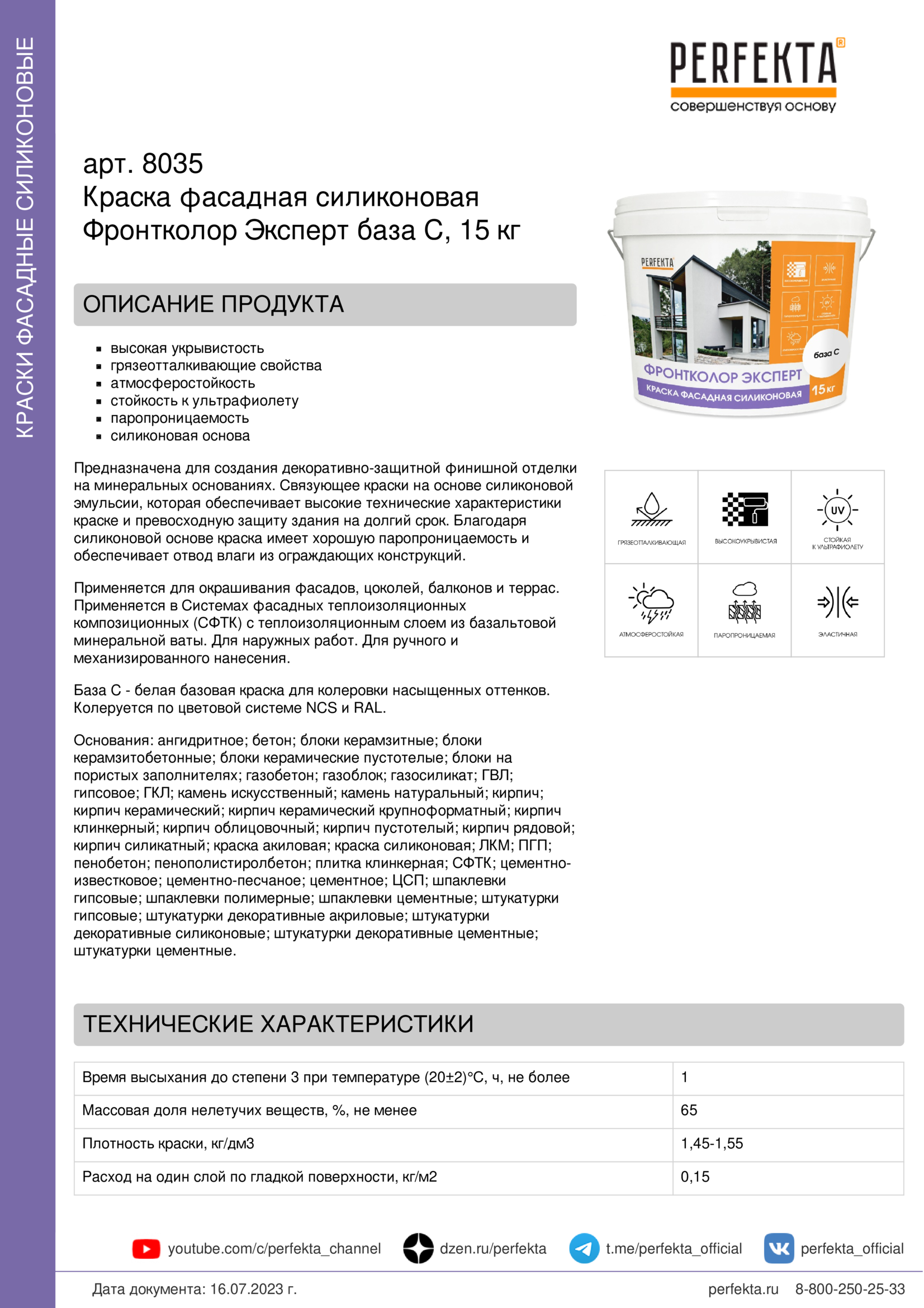 Предназначена для создания декоративно-защитной финишной отделки на минеральных основаниях. Связующее краски на основе силиконовой эмульсии, которая обеспечивает высокие технические характеристики краске и превосходную защиту здания на долгий срок. Благодаря силиконовой основе краска имеет хорошую паропроницаемость и обеспечивает отвод влаги из ограждающих конструкций.