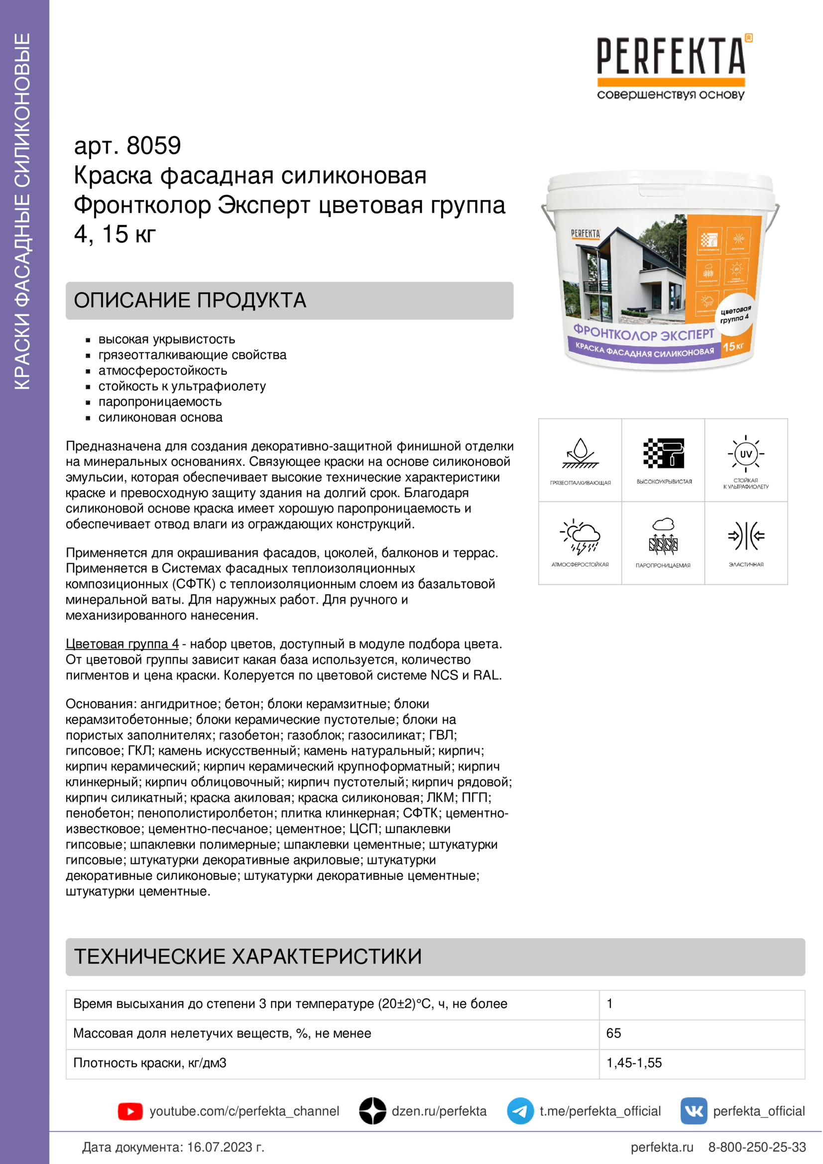 Краска фасадная силиконовая Фронтколор Эксперт цветовая группа 4, 15 кг