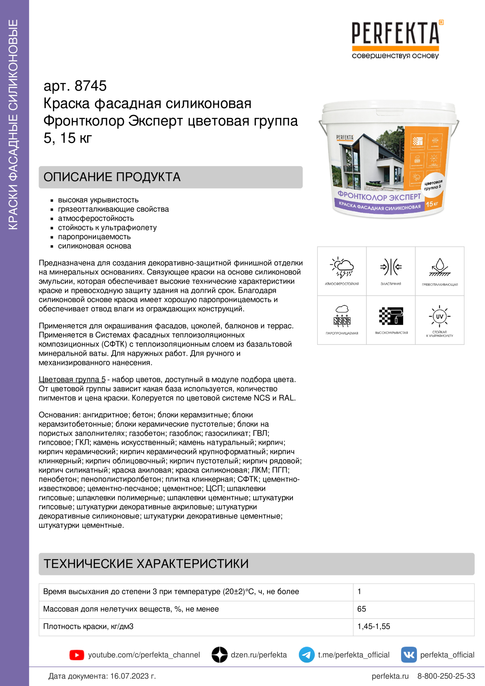 Краска фасадная силиконовая Фронтколор Эксперт цветовая группа 5, 15 кг