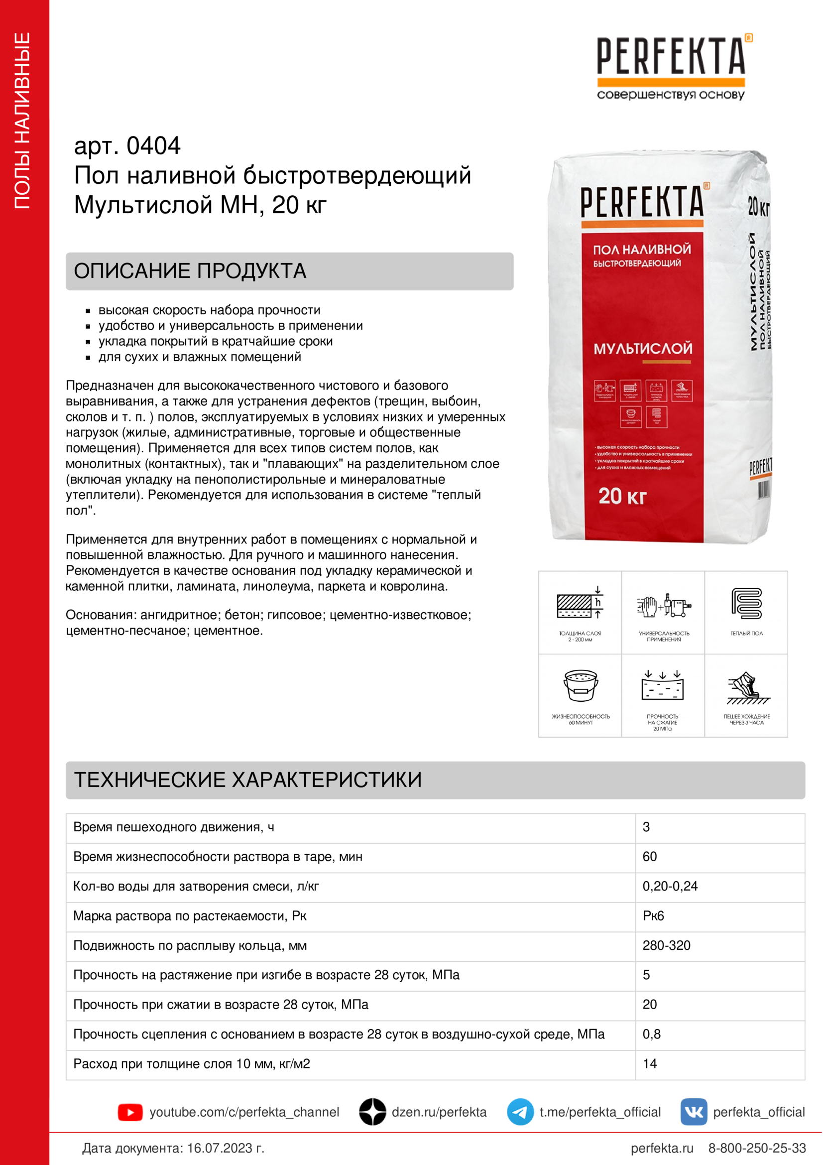 Все рекомендации и технические характеристики верны при температуре окружающей среды +20°С и относительной влажности 60 %. Качество материала гарантируется только при точном соблюдении инструкции производителя по технологии применения и требований СНиП и СП. Данная инструкция теряет силу после появления новой версии на сайте perfekta.ru.