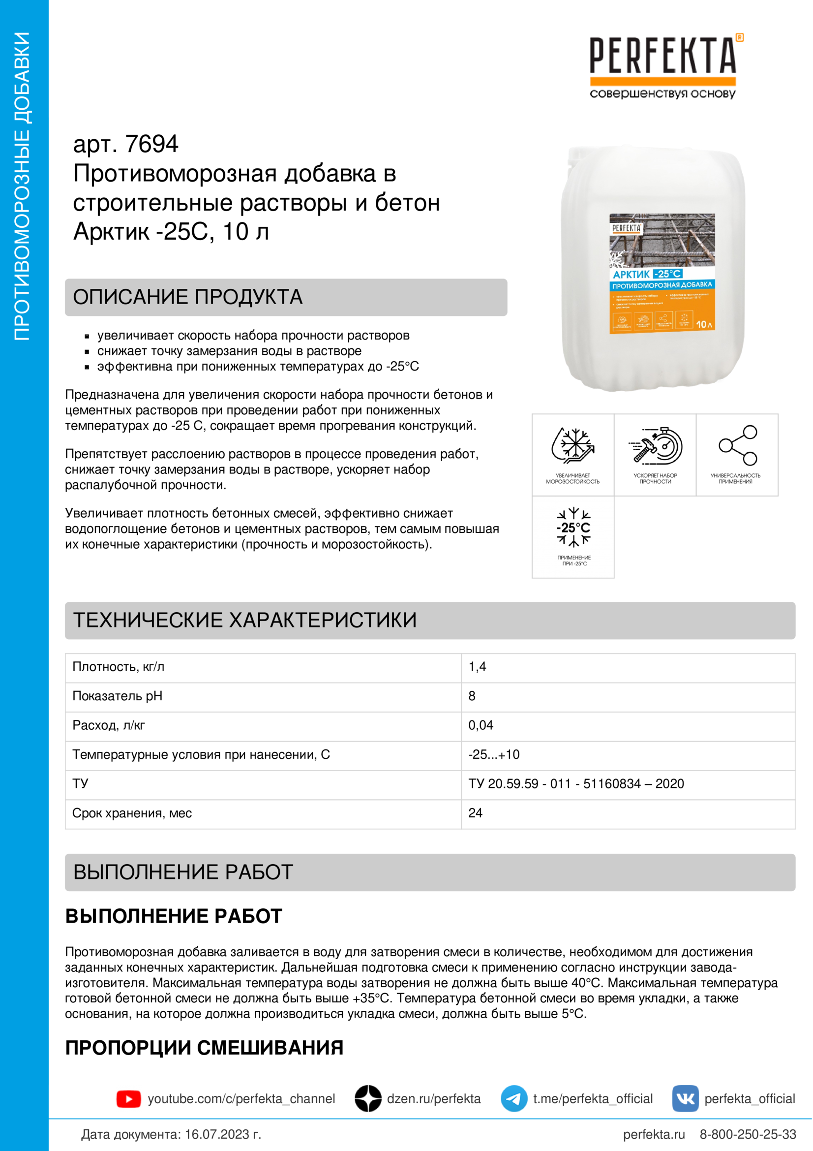 Противоморозная добавка в строительные растворы и бетон Арктик -25С, 10 л