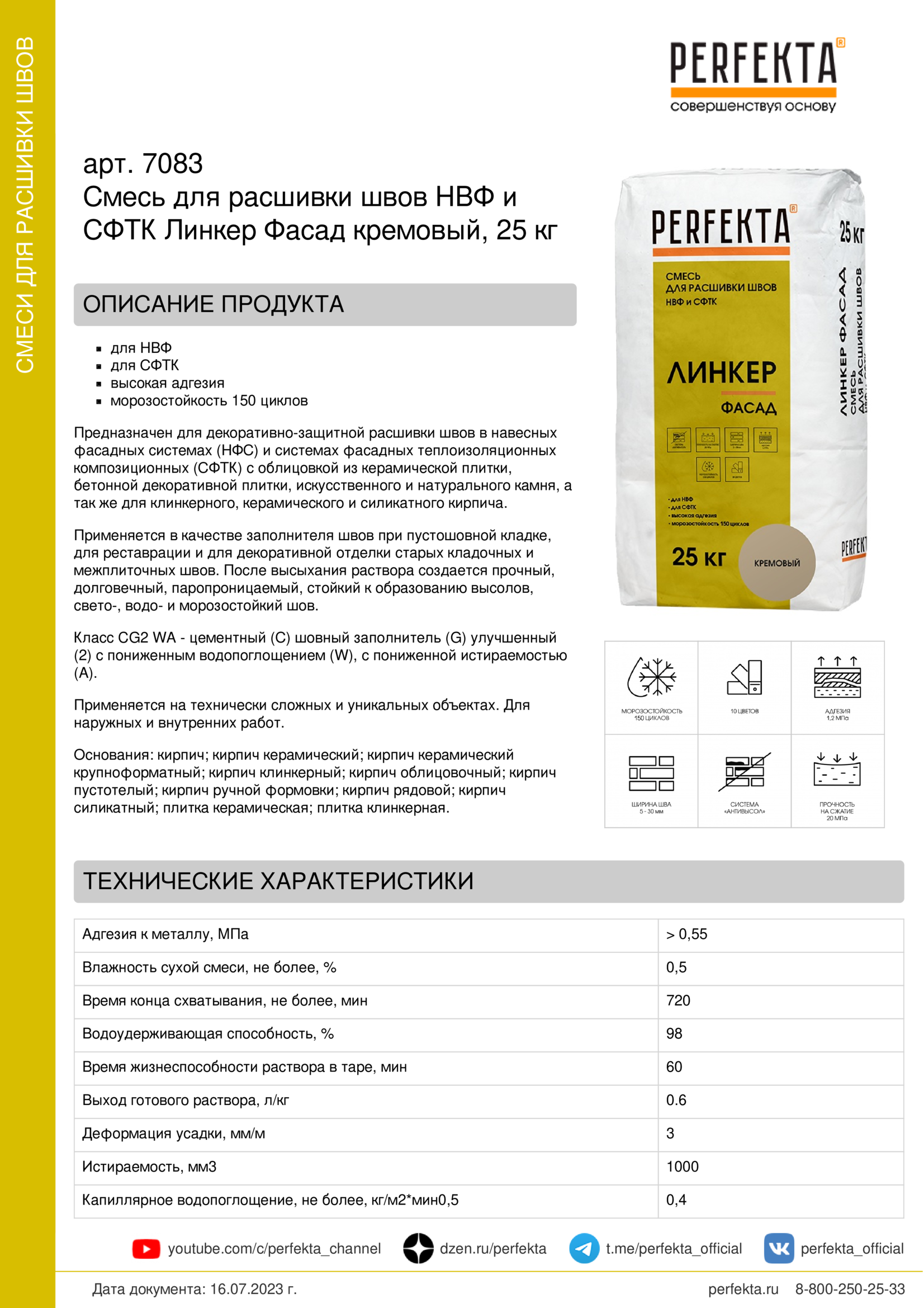 Для получения идеального результата рекомендуется дополнительная защита шва при помощи гидрофобизатора PERFEKTA Линкер Аквабарьер. Работы допускается производить при температуре воздуха и кладочных элементов не ниже +5 С и не выше +30 С. Свежеуложенную кладку и швы необходимо защищать от воздействия повышенных температур, осадков, сквозняков, попадания прямых солнечных лучей и мороза в течение 5-7 дней. Защиту следует производить с помощью накрывания пленкой, но при этом обеспечивать проветривание во избежание образования конденсата под пленкой.