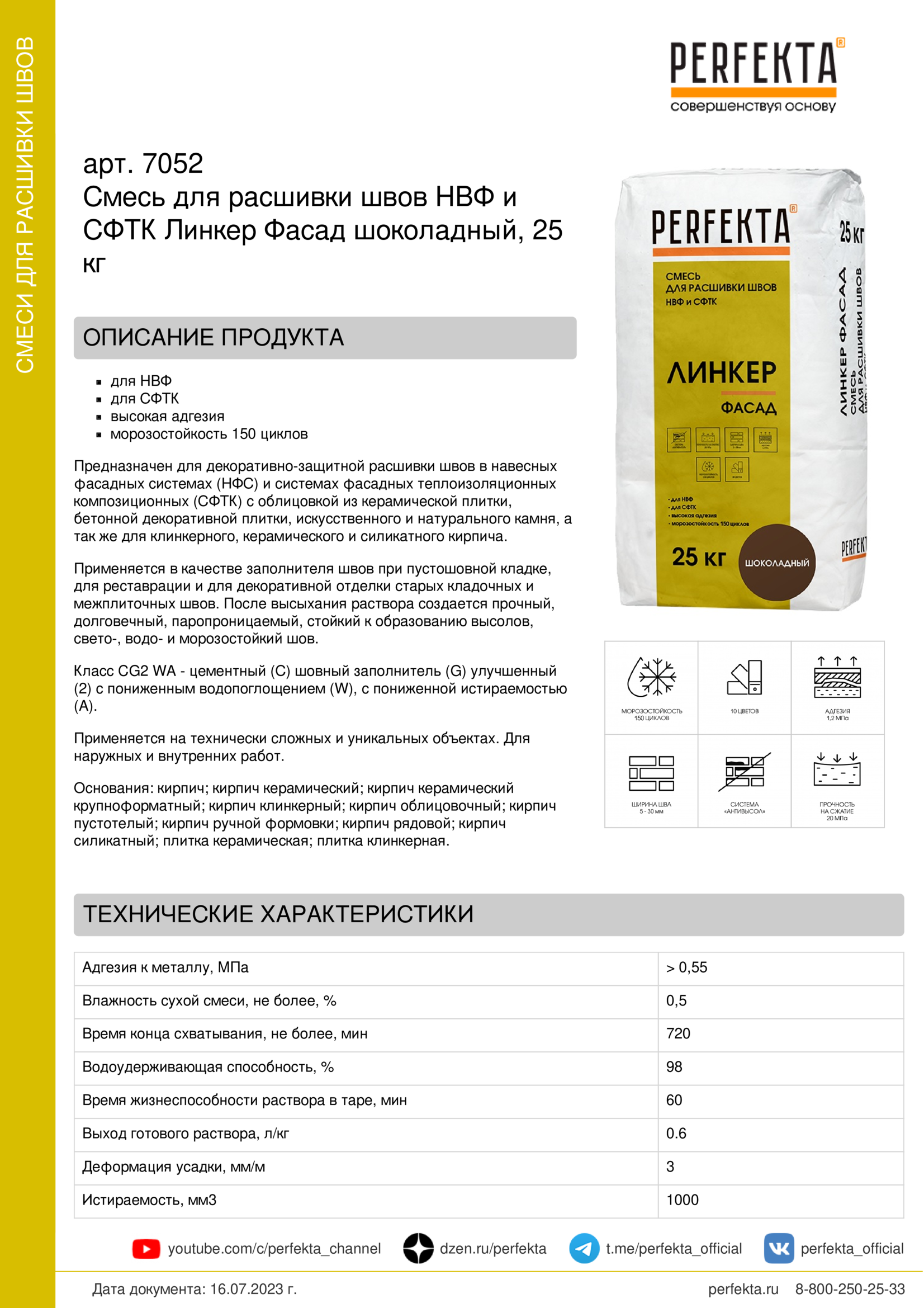 Для получения идеального результата рекомендуется дополнительная защита шва при помощи гидрофобизатора PERFEKTA Линкер Аквабарьер. Работы допускается производить при температуре воздуха и кладочных элементов не ниже +5 С и не выше +30 С. Свежеуложенную кладку и швы необходимо защищать от воздействия повышенных температур, осадков, сквозняков, попадания прямых солнечных лучей и мороза в течение 5-7 дней. Защиту следует производить с помощью накрывания пленкой, но при этом обеспечивать проветривание во избежание образования конденсата под пленкой.