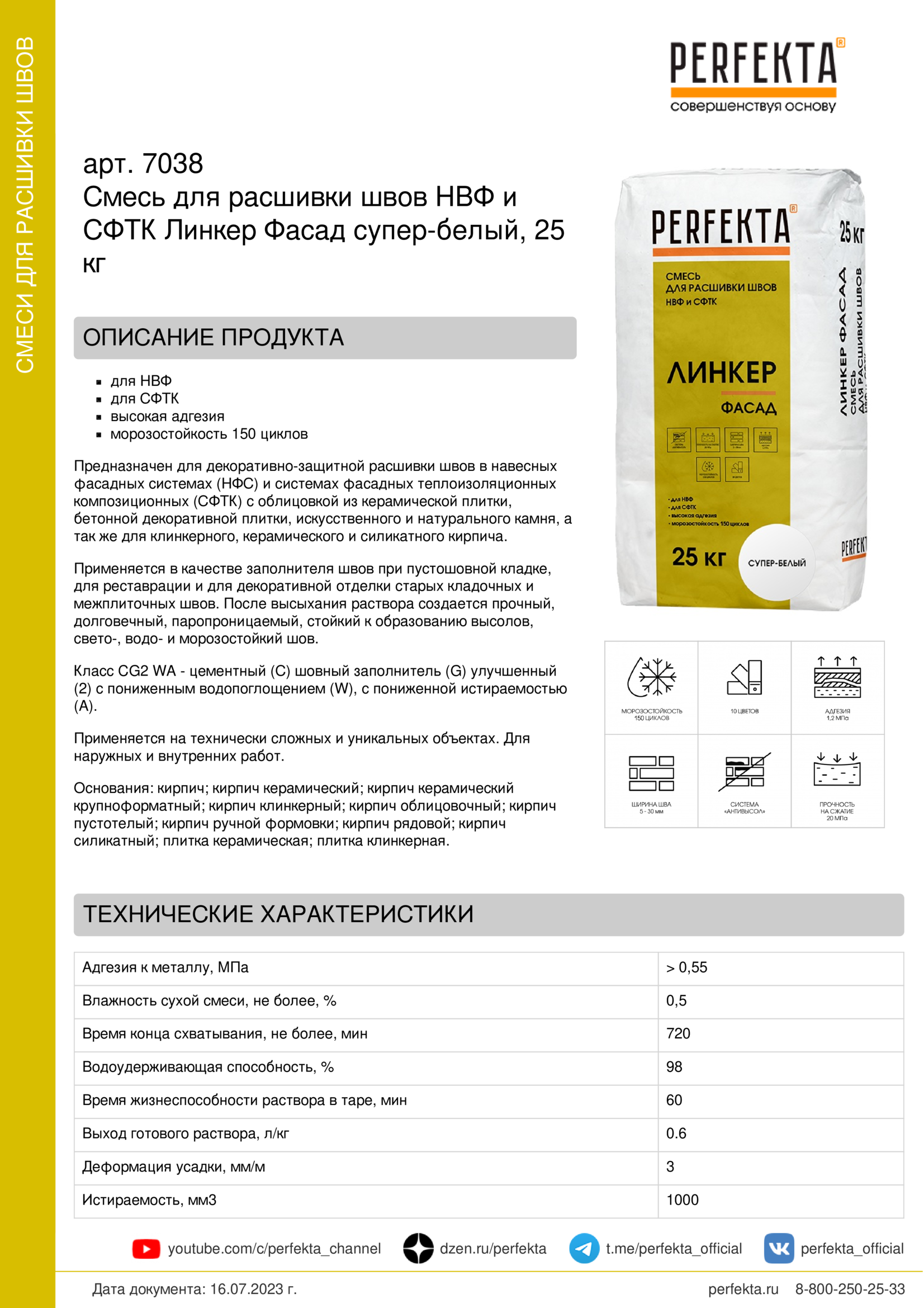 Для получения идеального результата рекомендуется дополнительная защита шва при помощи гидрофобизатора PERFEKTA Линкер Аквабарьер. Работы допускается производить при температуре воздуха и кладочных элементов не ниже +5 С и не выше +30 С. Свежеуложенную кладку и швы необходимо защищать от воздействия повышенных температур, осадков, сквозняков, попадания прямых солнечных лучей и мороза в течение 5-7 дней. Защиту следует производить с помощью накрывания пленкой, но при этом обеспечивать проветривание во избежание образования конденсата под пленкой.