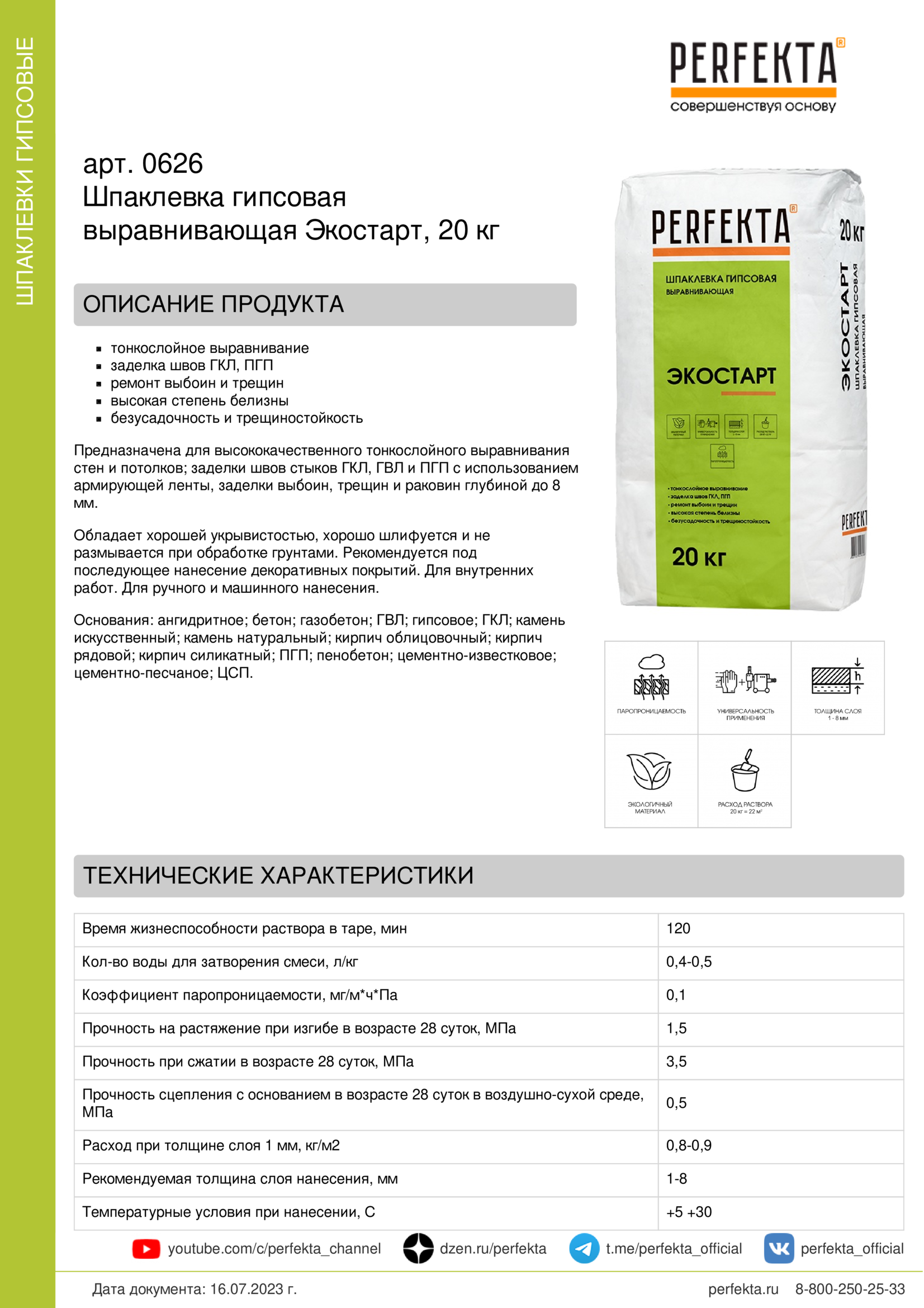 Все рекомендации и технические характеристики верны при температуре окружающей среды +20ºС и относительной влажности 60 %. Качество материала гарантируется только при точном соблюдении инструкции производителя по технологии применения и требований СНиП и СП. Данная инструкция теряет силу после появления новой версии на сайте perfekta.ru.