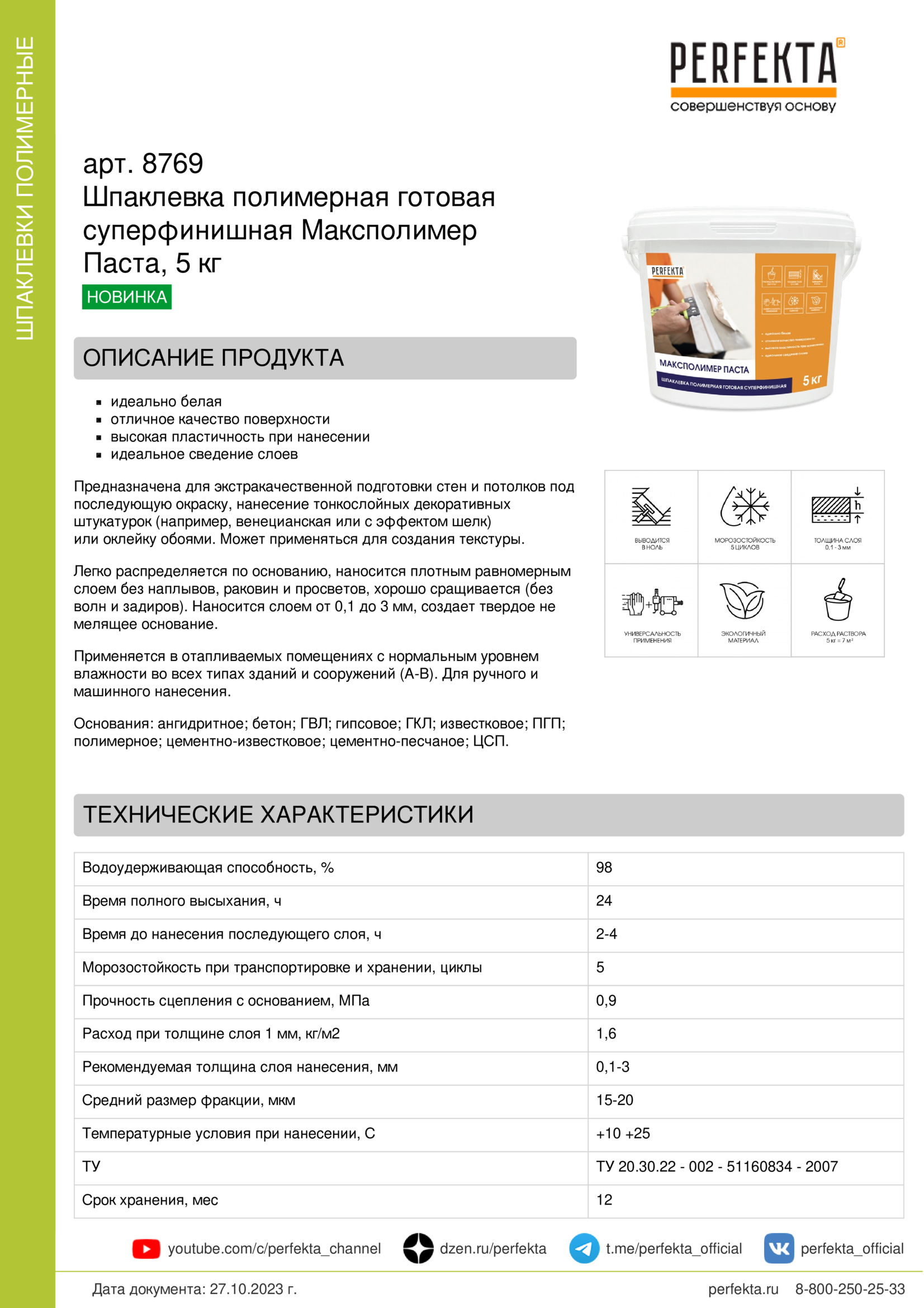 Все рекомендации и технические характеристики верны при температуре окружающей среды +20о С и относительной влажности 60 %. Качество материала гарантируется только при точном соблюдении инструкции производителя по технологии применения и требований СНиП и СП. Данная инструкция теряет силу после появления новой версии на сайте perfekta.ru.