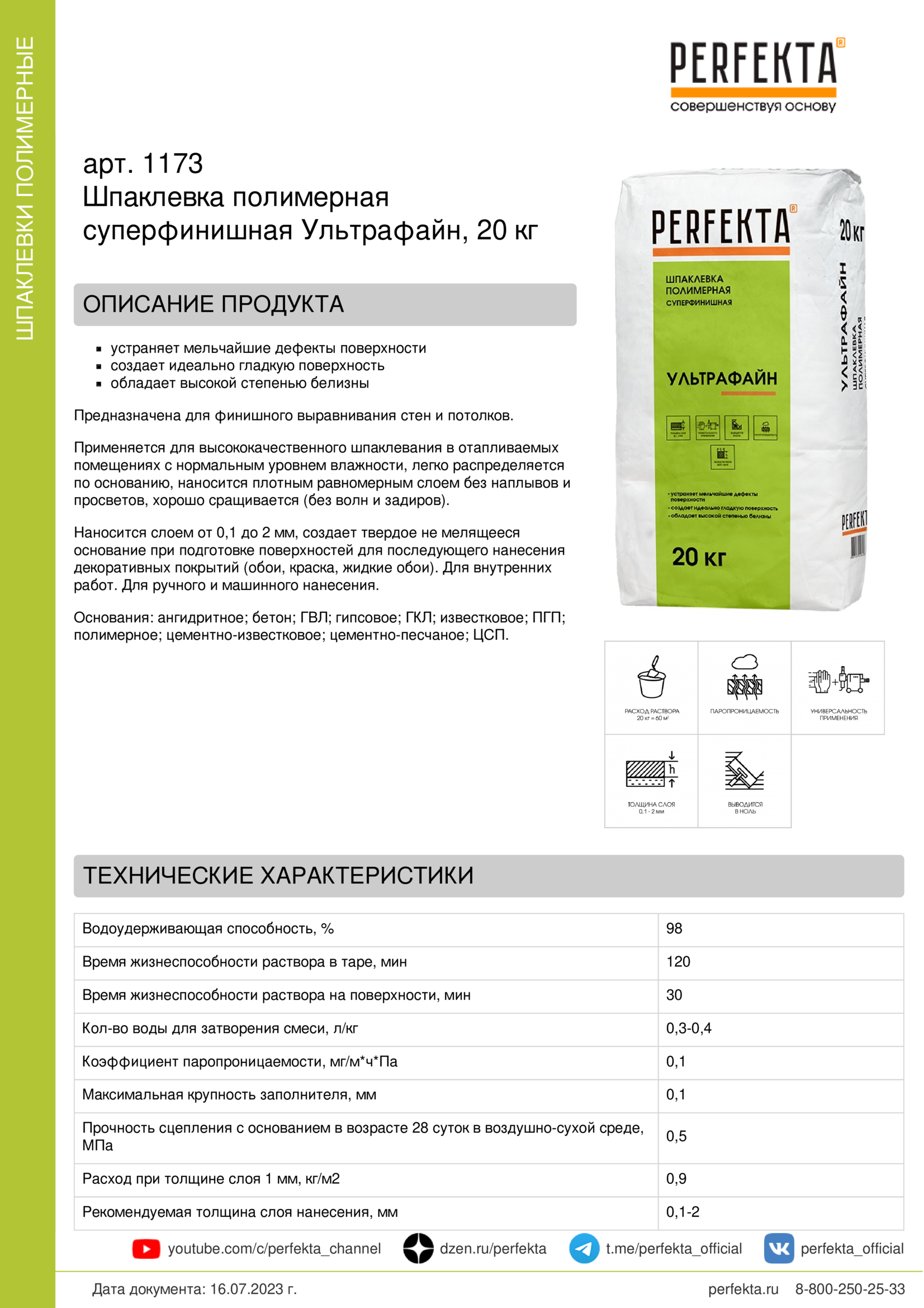 Все рекомендации и технические характеристики верны при температуре окружающей среды +20°С и относительной влажности 60%. Качество материала гарантируется только при точном соблюдении инструкции производителя по технологии применения и требований СНиП и СП. Данная инструкция теряет силу после появления новой версии на сайте perfekta.ru.