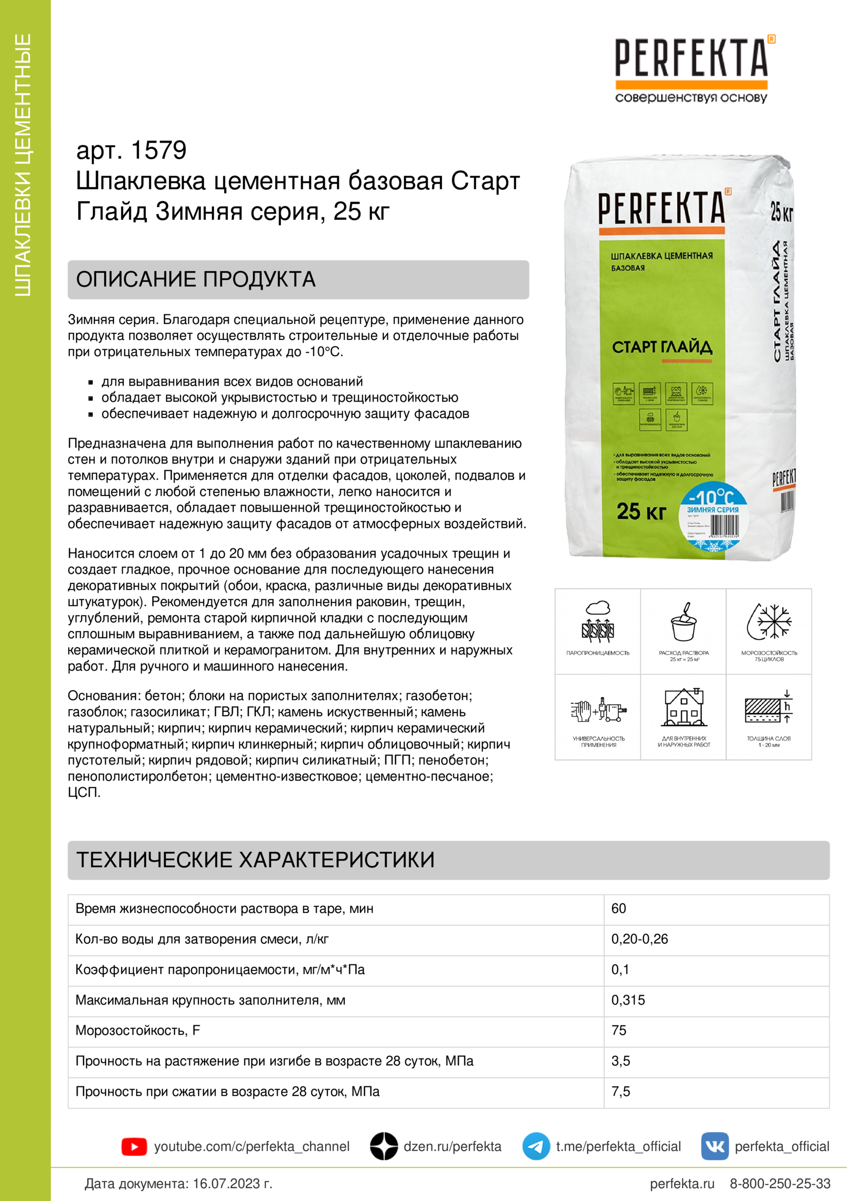 Зимняя серия. Благодаря специальной рецептуре, применение данного продукта позволяет осуществлять строительные и отделочные работы при отрицательных температурах до -10°С.