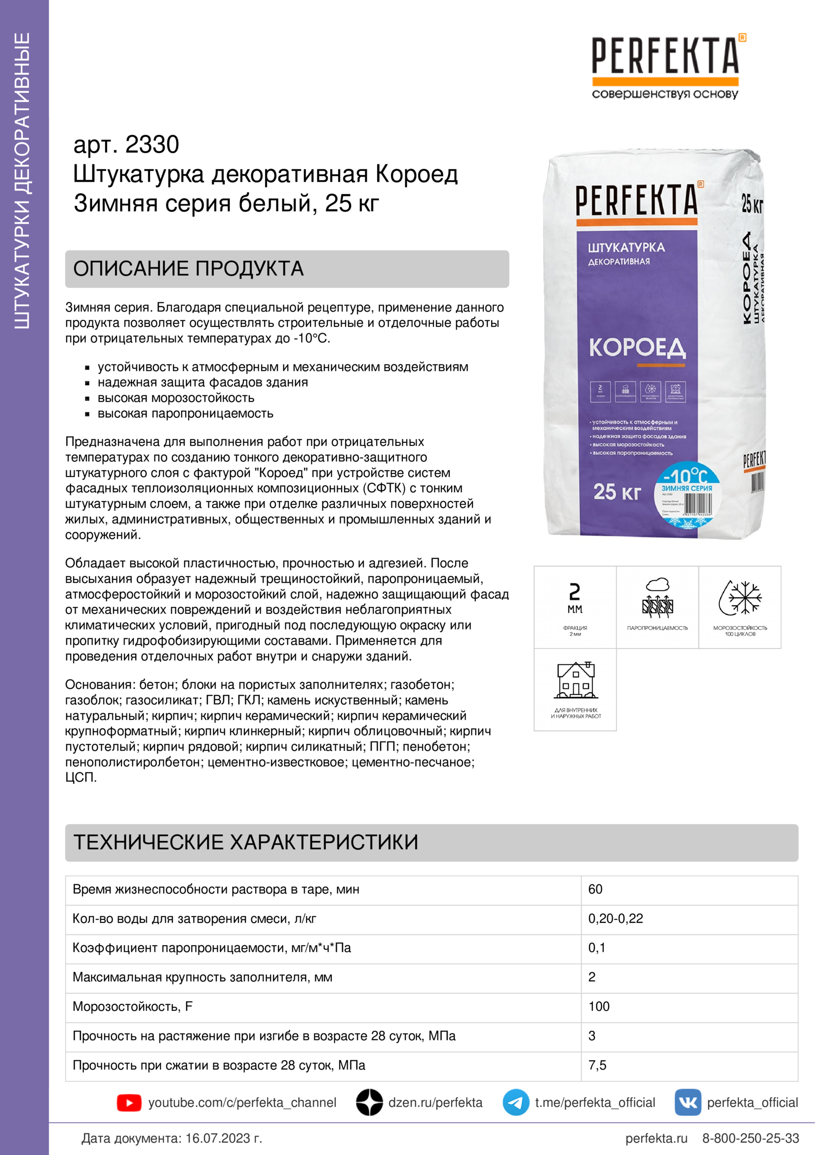 Предназначена для выполнения работ при отрицательных температурах по созданию тонкого декоративно-защитного штукатурного слоя с фактурой "Короед" при устройстве систем фасадных теплоизоляционных композиционных (СФТК) с тонким штукатурным слоем, а также при отделке различных поверхностей жилых, административных, общественных и промышленных зданий и сооружений.