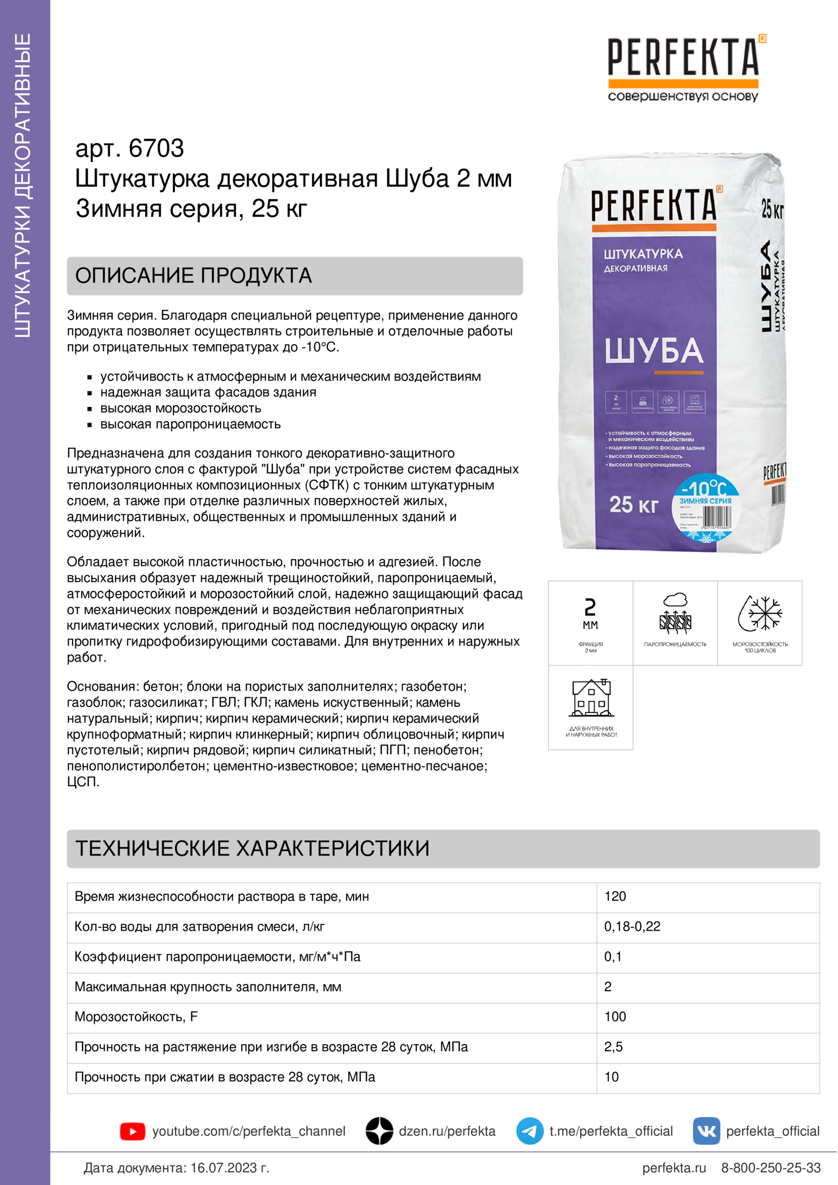 Зимняя серия. Благодаря специальной рецептуре, применение данного продукта позволяет осуществлять строительные и отделочные работы при отрицательных температурах до -10°С.