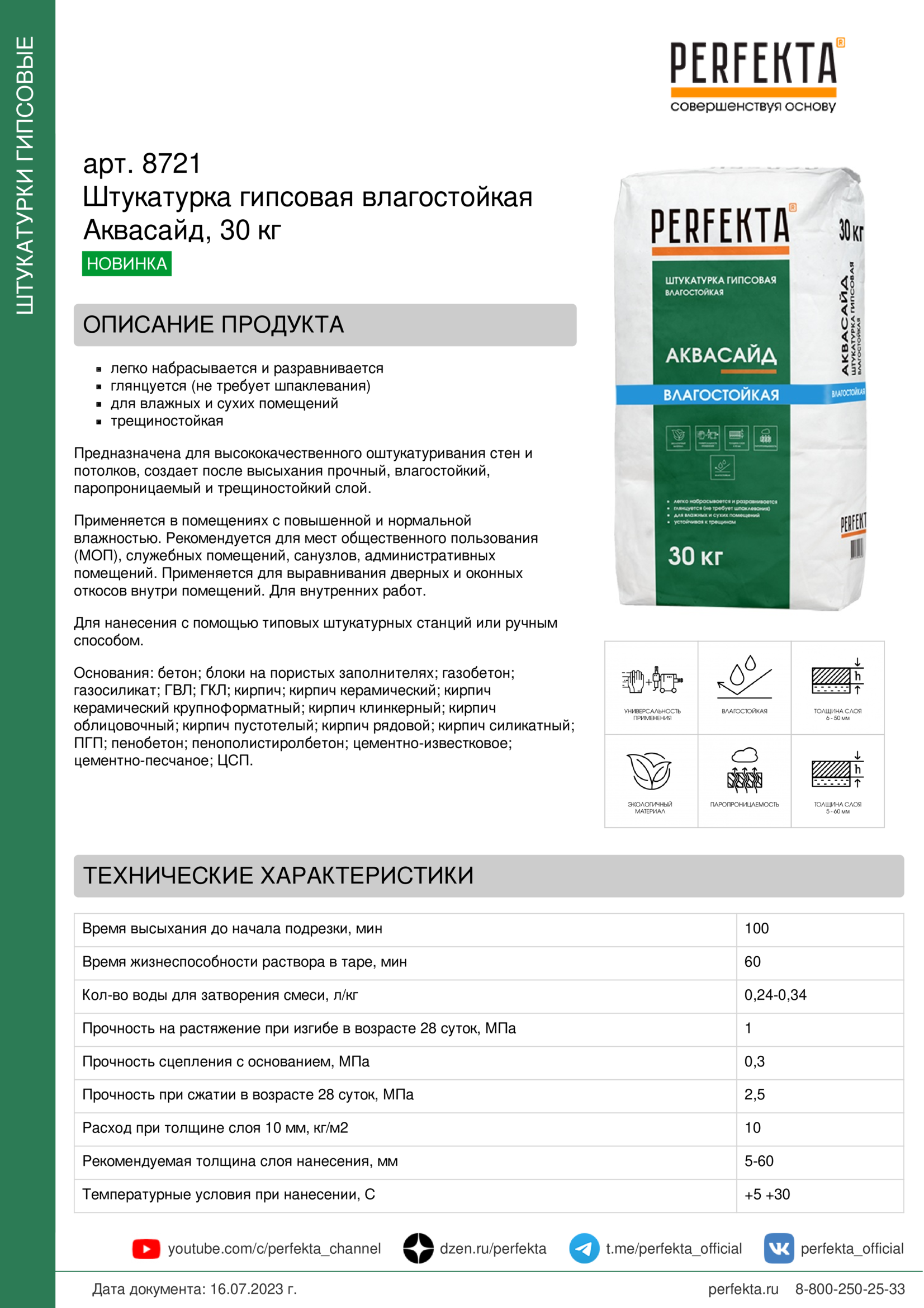 ВНИМАНИЕ! Все рекомендации и технические характеристики верны при температуре окружающей среды +20 °С и относительной влажности 60 %. Качество материала гарантируется только при точном соблюдении инструкции производителя по технологии применения и требований СНиП и СП. Данная инструкция теряет силу после появления новой версии на сайте perfekta.ru.