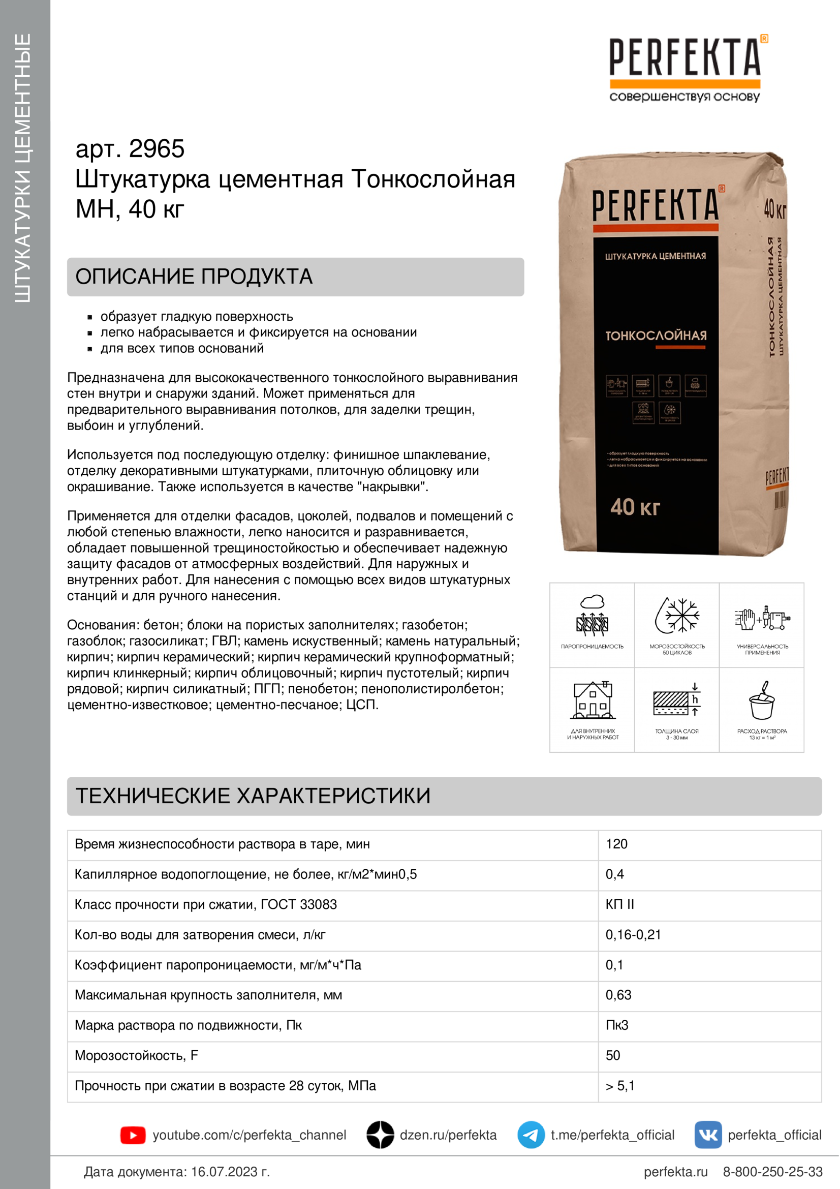Все рекомендации и технические характеристики верны при температуре окружающей среды +20°С и относительной влажности 60 %. Качество материала гарантируется только при точном соблюдении инструкции производителя по технологии применения и требований СНиП и СП. Данная инструкция теряет силу после появления новой версии на сайте perfekta.ru.