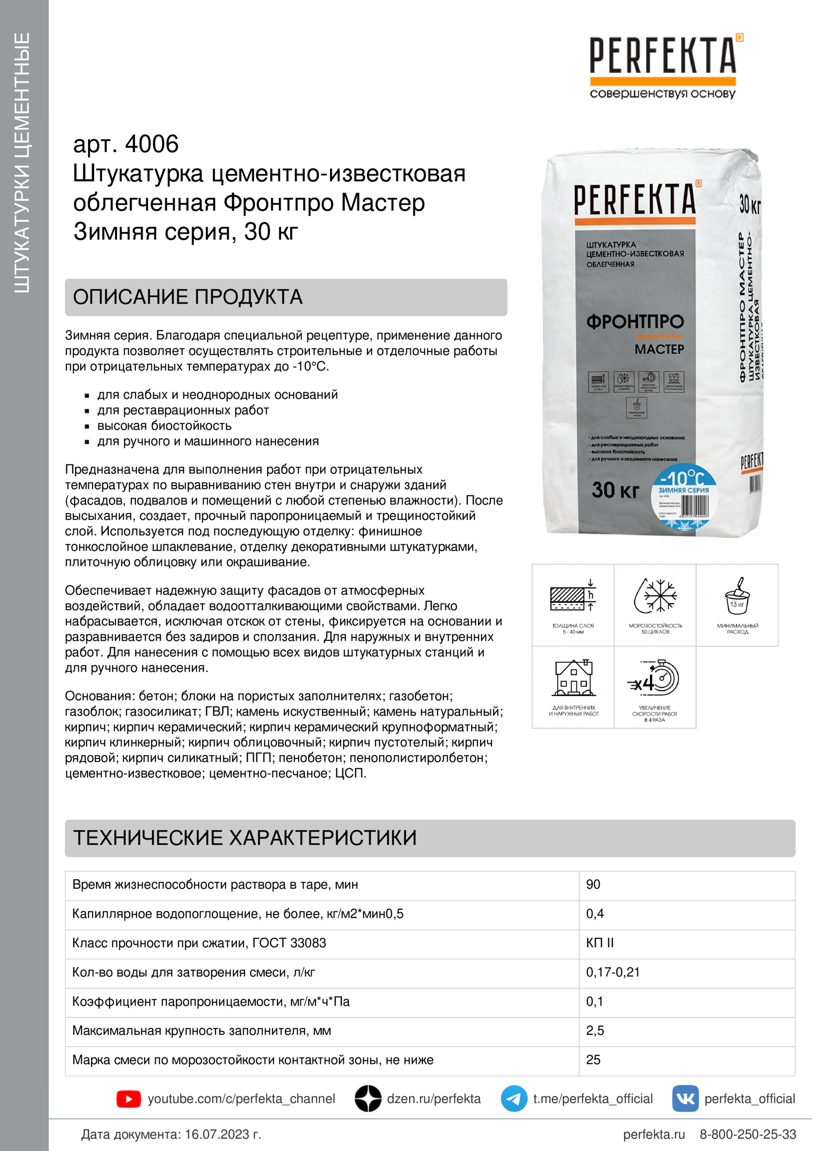 Все рекомендации и технические характеристики верны при температуре окружающей среды +20°С и относительной влажности 60 %. Качество материала гарантируется только при точном соблюдении инструкции производителя по технологии применения и требований СНиП и СП. Данная инструкция теряет силу после появления новой версии на сайте perfekta.ru.