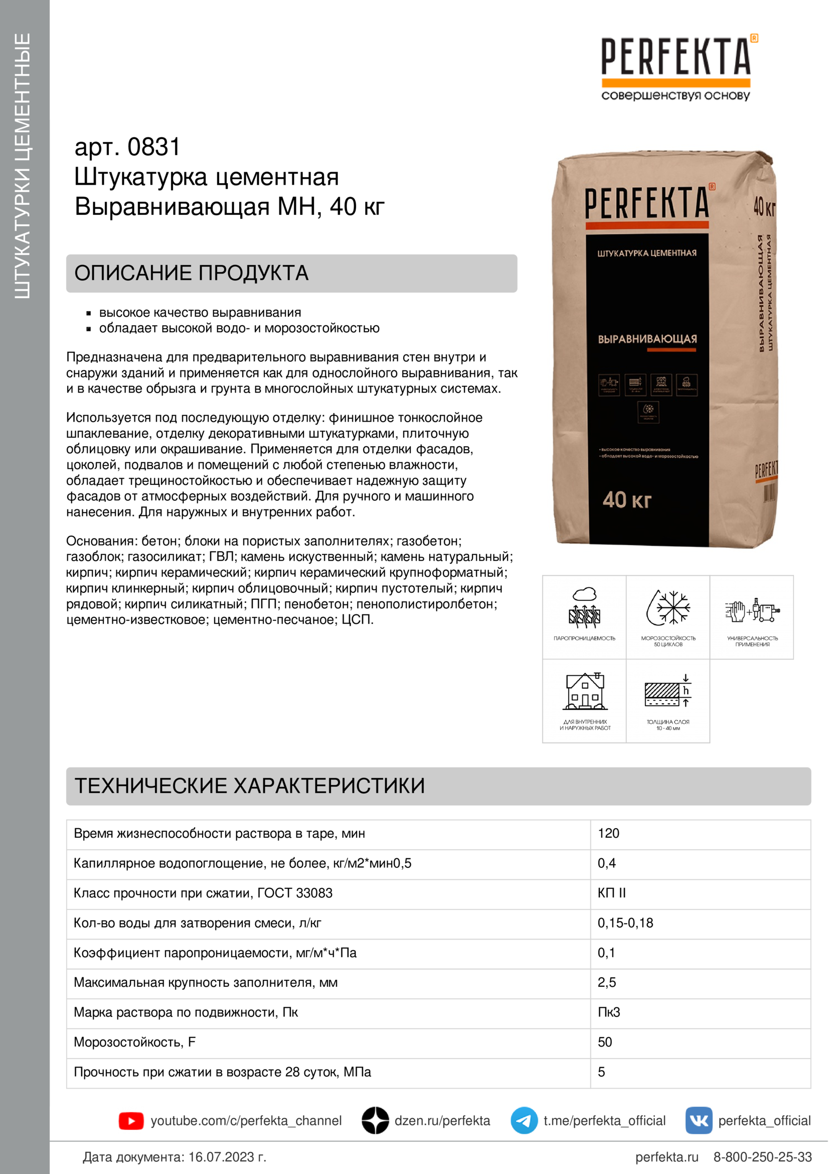 Все рекомендации и технические характеристики верны при температуре окружающей среды +20°С и относительной влажности 60 %. Качество материала гарантируется только при точном соблюдении инструкции производителя по технологии применения и требований СНиП и СП. Данная инструкция теряет силу после появления новой версии на сайте perfekta.ru.