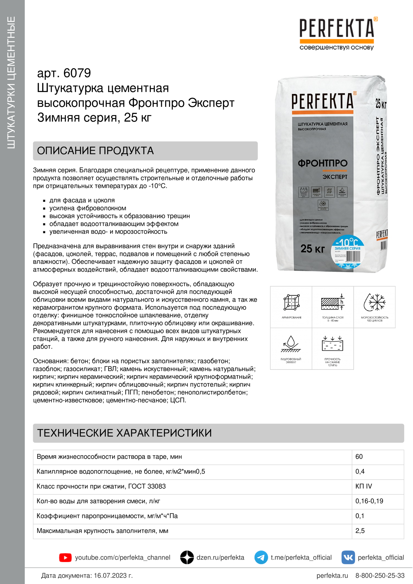 Зимняя серия. Благодаря специальной рецептуре, применение данного продукта позволяет осуществлять строительные и отделочные работы при отрицательных температурах до -10°С.