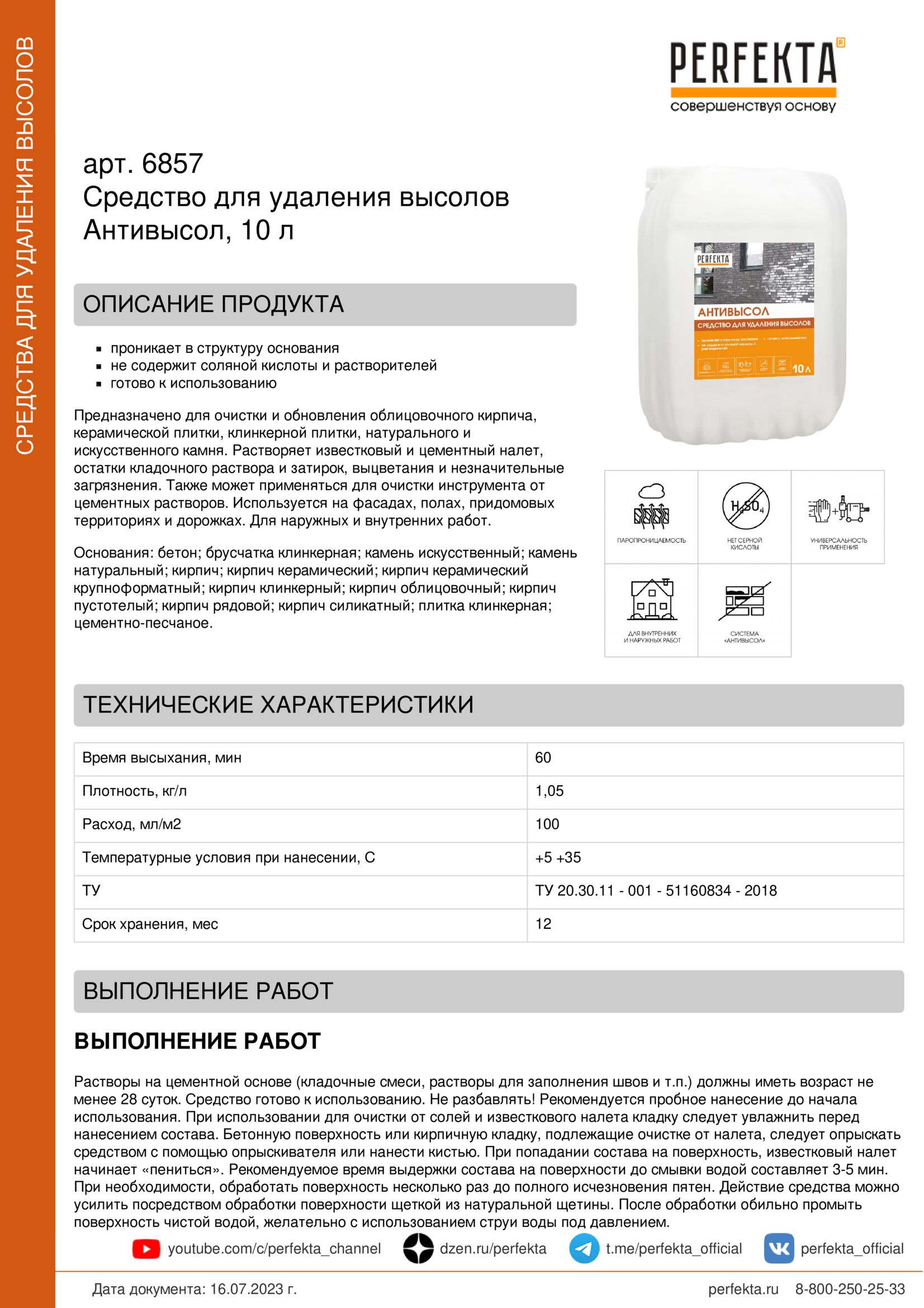 Средство для удаления высолов Антивысол, 10 л