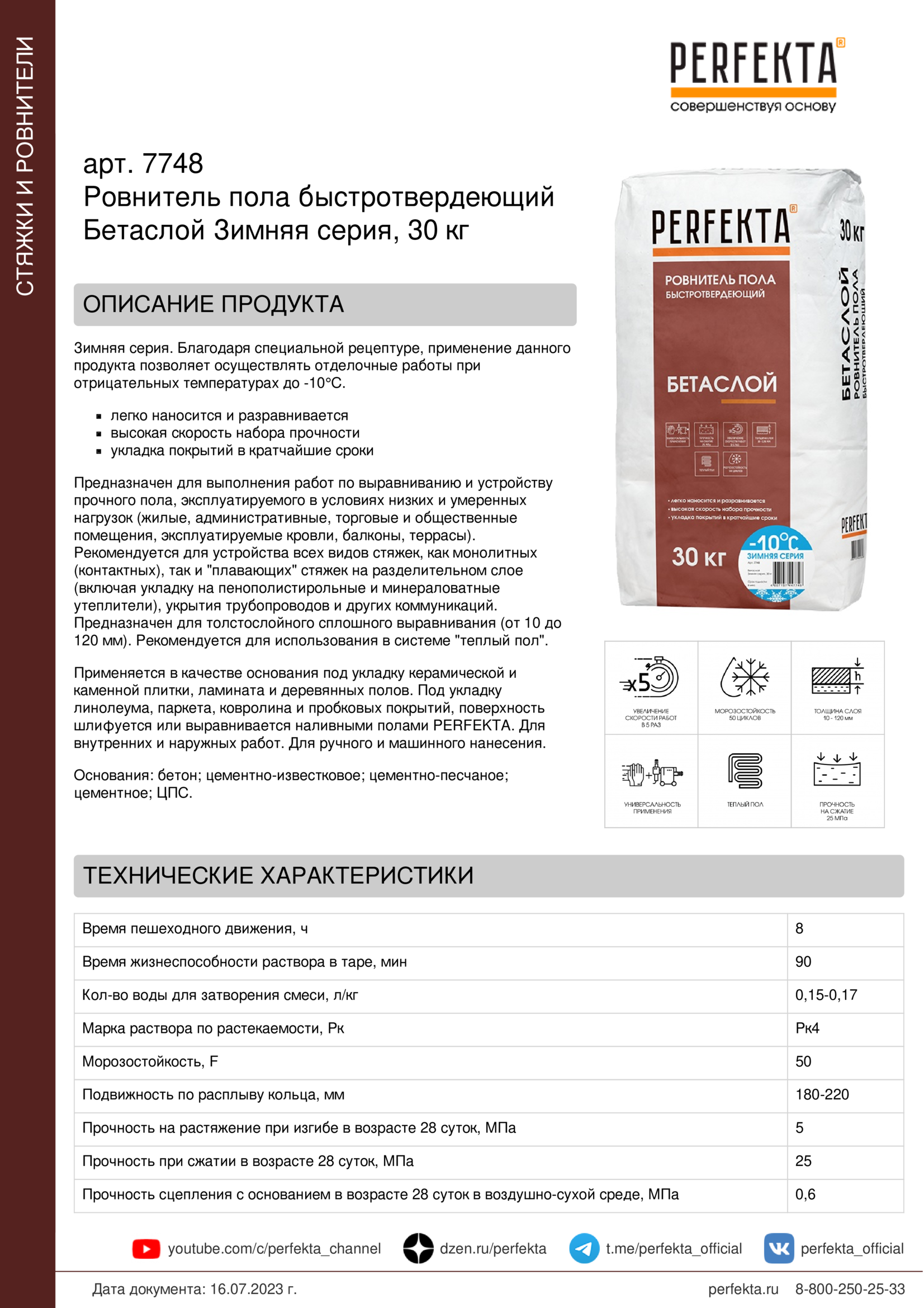 Все рекомендации и технические характеристики верны при температуре окружающей среды +20°С и относительной влажности 60 %. Качество материала гарантируется только при точном соблюдении инструкции производителя по технологии применения и требований СНиП и СП. Данная инструкция теряет силу после появления новой версии на сайте perfekta.ru.