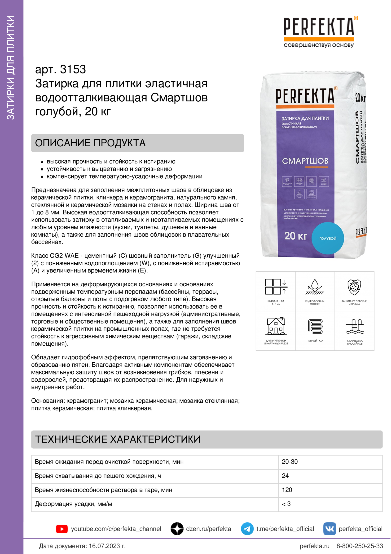 Все рекомендации и технические характеристики верны при температуре окружающей среды +20 С и относительной влажности 60 %. Качество материала гарантируется только при точном соблюдении инструкции производителя по технологии применения и требований СНиП и СП. Данная инструкция теряет силу после появления новой версии на сайте perfekta.ru.