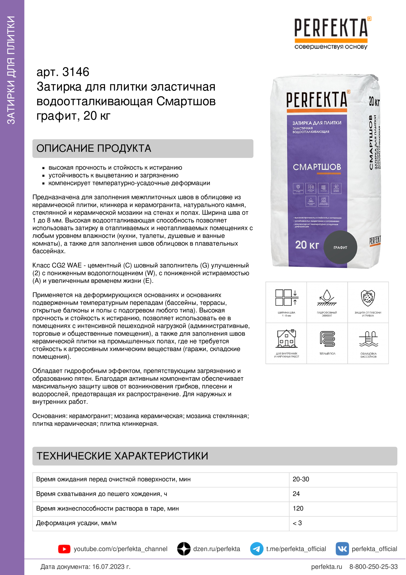 Все рекомендации и технические характеристики верны при температуре окружающей среды +20 С и относительной влажности 60 %. Качество материала гарантируется только при точном соблюдении инструкции производителя по технологии применения и требований СНиП и СП. Данная инструкция теряет силу после появления новой версии на сайте perfekta.ru.