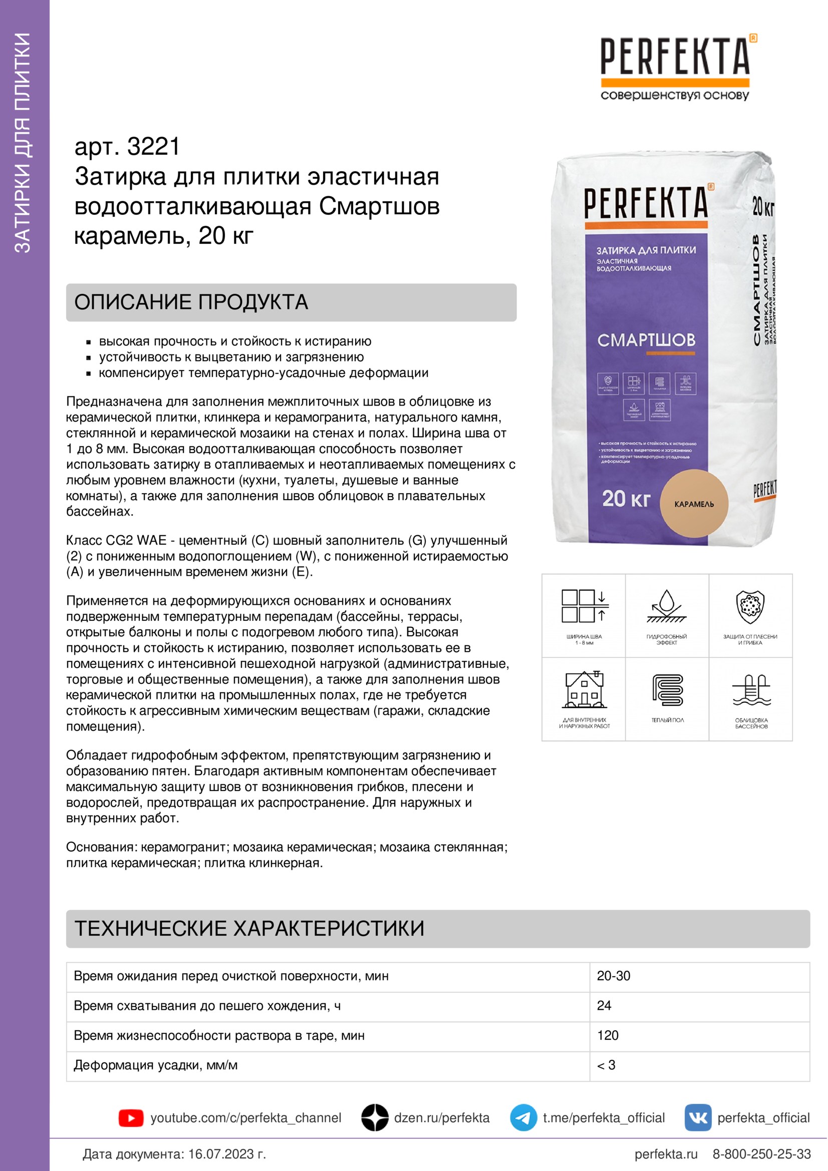Все рекомендации и технические характеристики верны при температуре окружающей среды +20 С и относительной влажности 60 %. Качество материала гарантируется только при точном соблюдении инструкции производителя по технологии применения и требований СНиП и СП. Данная инструкция теряет силу после появления новой версии на сайте perfekta.ru.