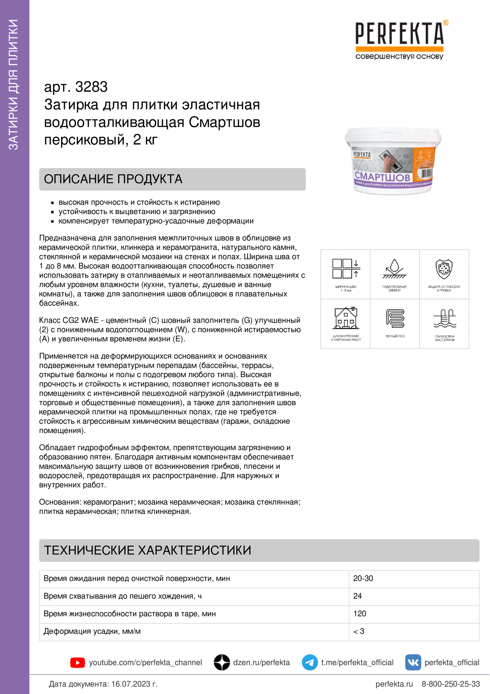 Все рекомендации и технические характеристики верны при температуре окружающей среды +20 С и относительной влажности 60 %. Качество материала гарантируется только при точном соблюдении инструкции производителя по технологии применения и требований СНиП и СП. Данная инструкция теряет силу после появления новой версии на сайте perfekta.ru.