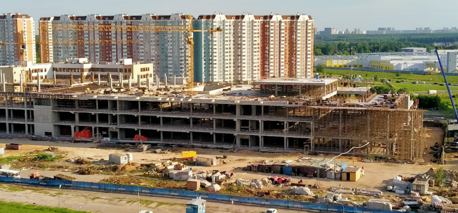 Торгово-развлекательный центр «Небо» c кинотеатром строится на западе столицы. Проект разработало бюро Blank Architects. Авторы вдохновлялись темой авиации. Главный фасад будет прозрачным, с высоким остеклением. Отсюда откроется вид на площадь, озеленение и район в целом. Все это подчеркнет связь интерьера и общественных пространств, которые перетекают с улицы в само здание.
