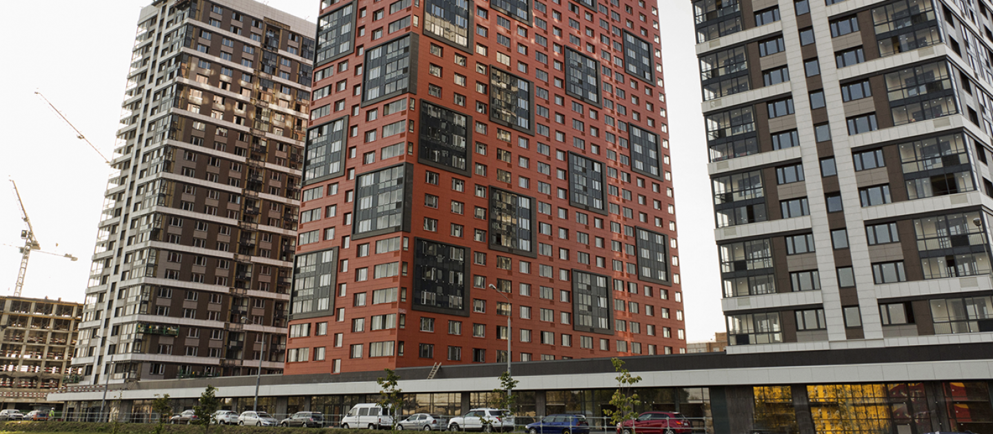 Дома строятся в стиле модернизма, но со скандинавской строгостью. Облицовка из навесных фасадов позволила придать каждому корпусу индивидуальный облик за счет декоративных конструкций и яркой окраски.